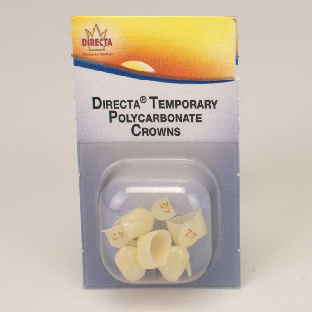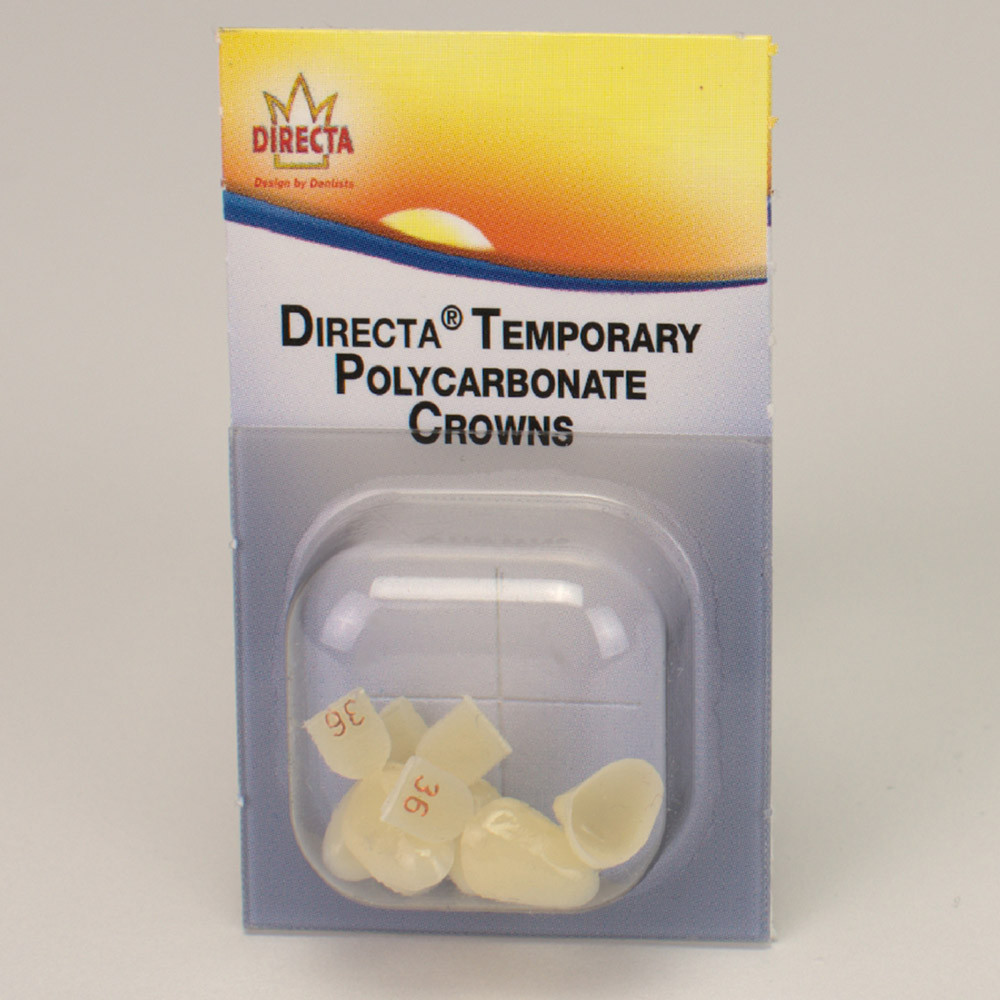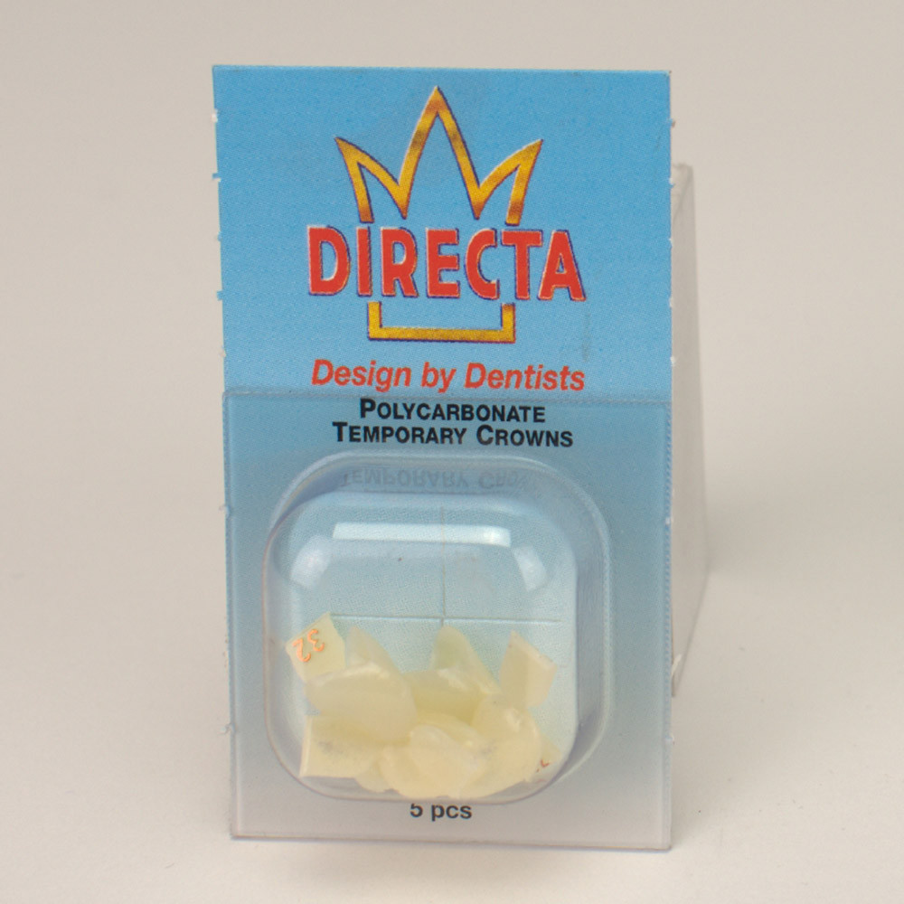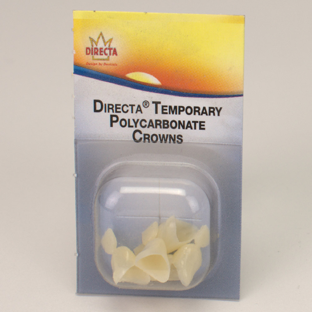 Temporärkronen aus Polycarbonat, einem harten, biokompatiblen Material, wiederstandsfähig im Mund, ermöglicht ein risikofreies Einschleifen ohne Bruchgefahr. Die einzigartige Directa Formleiste ermöglicht einfache Handhabung, Selektierung und Entnahme auch bei sehr kleinen Kronen.