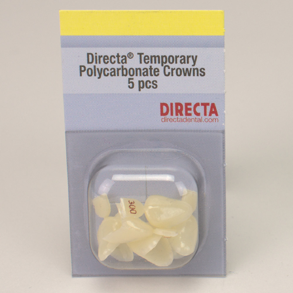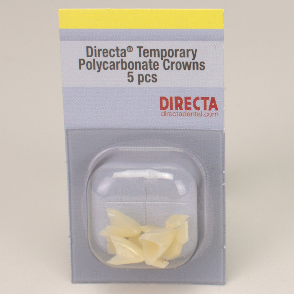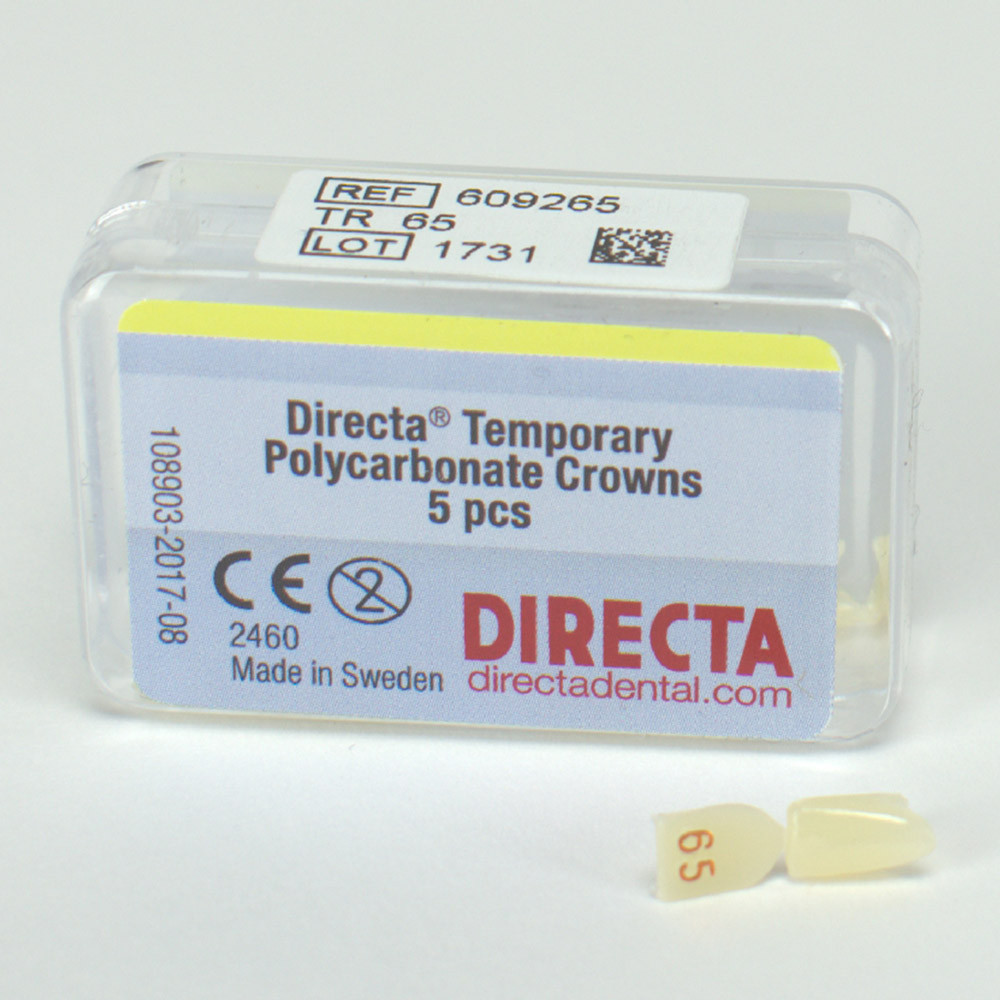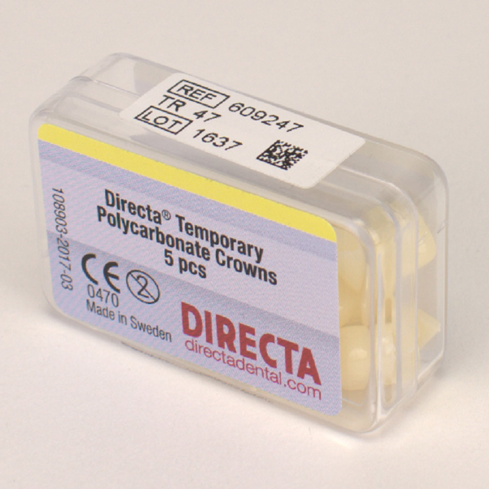Temporärkronen aus Polycarbonat, einem harten, biokompatiblen Material, wiederstandsfähig im Mund, ermöglicht ein risikofreies Einschleifen ohne Bruchgefahr. Die einzigartige Directa Formleiste ermöglicht einfache Handhabung, Selektierung und Entnahme auch bei sehr kleinen Kronen.