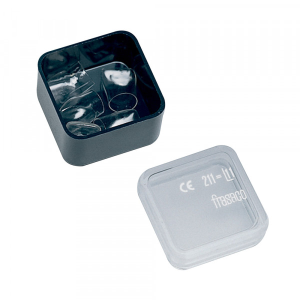 Frasaco Strip-Kronen sind dünn, elastisch, leicht zu beschneiden und in klarer Ausführung, lichtdurchlässig für Polymerisationslicht. Sie dienen als Formgeber, der temporären Versorgung beschliffener Zähne, dem Schutze großer Füllungen sowie als Matrize für Ecken- und Kantenaufbauten. Das Aufsetzen erfolgt mit den üblichen provisorischen Füllungsmaterialien.