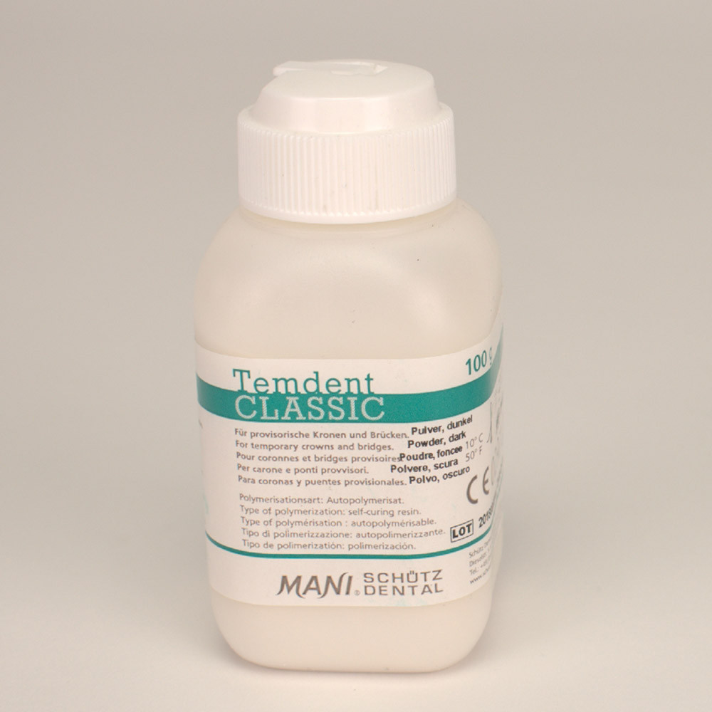 Fertigen Sie provisorische Kronen und Brücken mit unserem Temdent Classic. Ein Autopolymerisat auf PMMA-Basis mit nur 0,8 % Restmonomergehalt.