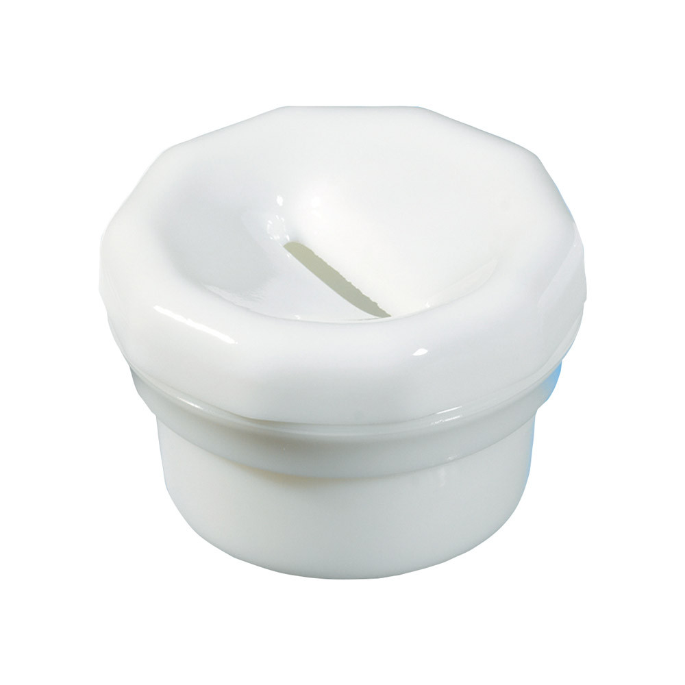 Aus Simplex-Opalglas. Sattweiße Farbe, sterilisierbar, mit farbiger Beringung an der Schulter des...