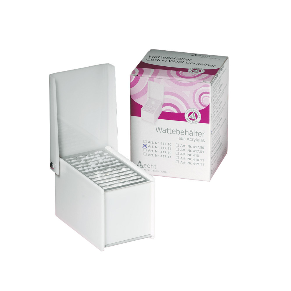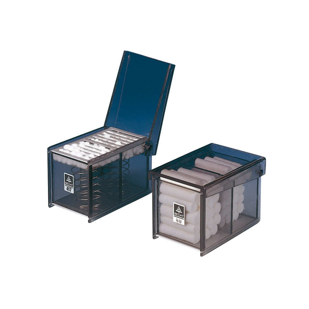 Watterollenbehälter aus rauchgrauem Acrylglas mit Steg zur Aufnahme von Watterollen in zwei verschiedenen...