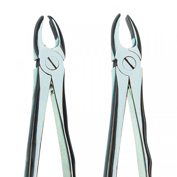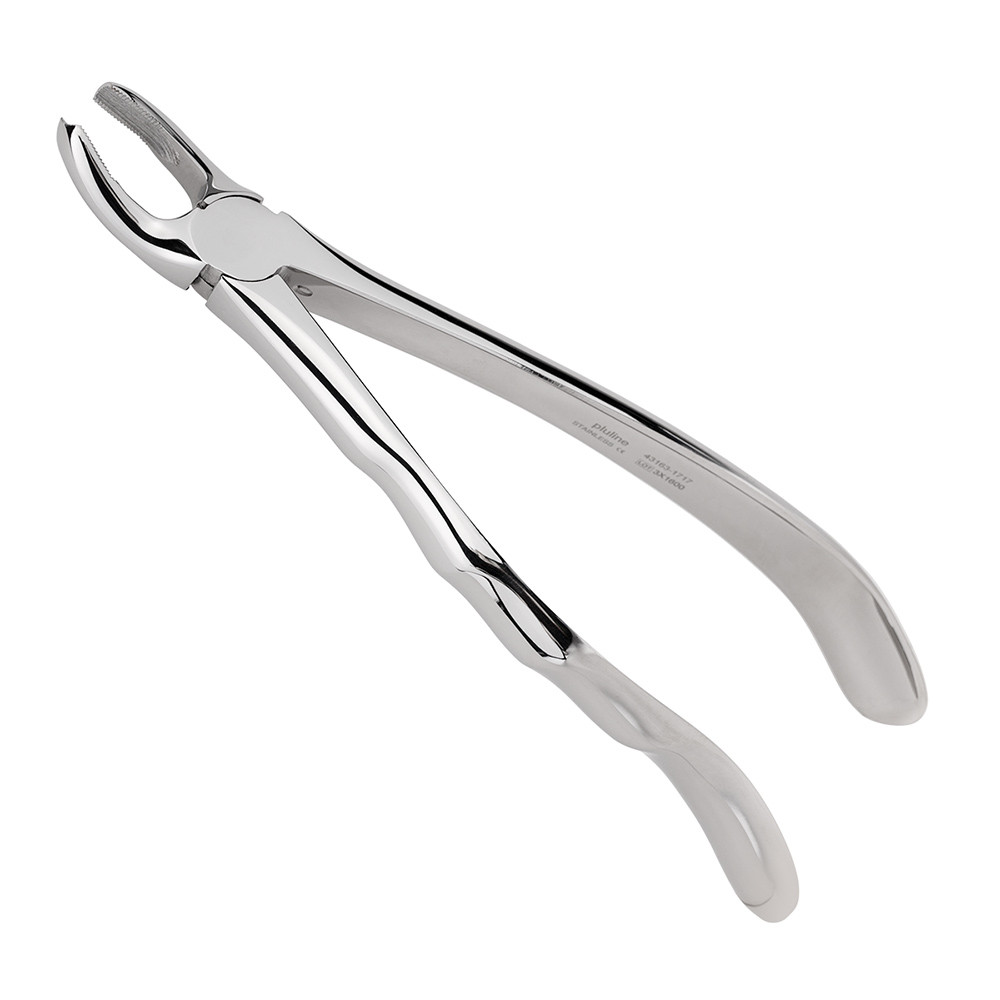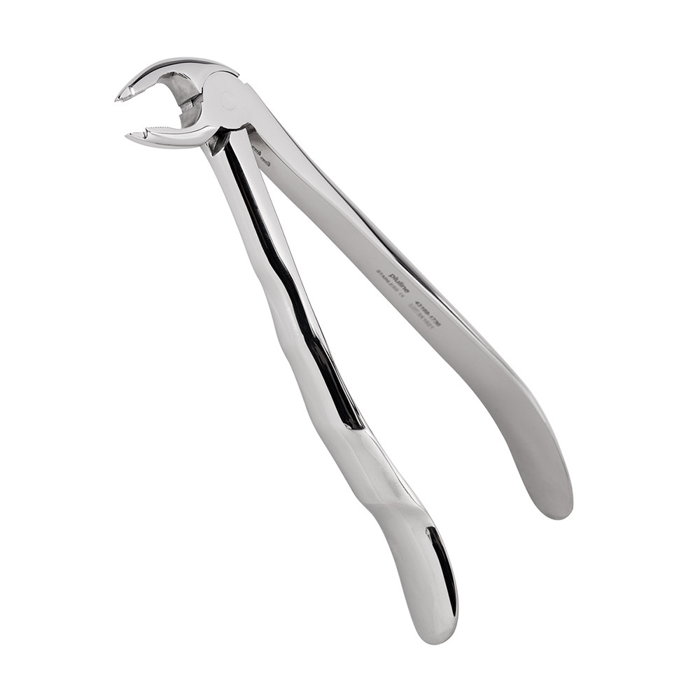 Zahnzange mit ergonomischen Euro-Griff, Arbeitsende mit Haftprofil. Figur 1717 OK-Molaren rechts Figur 1718...