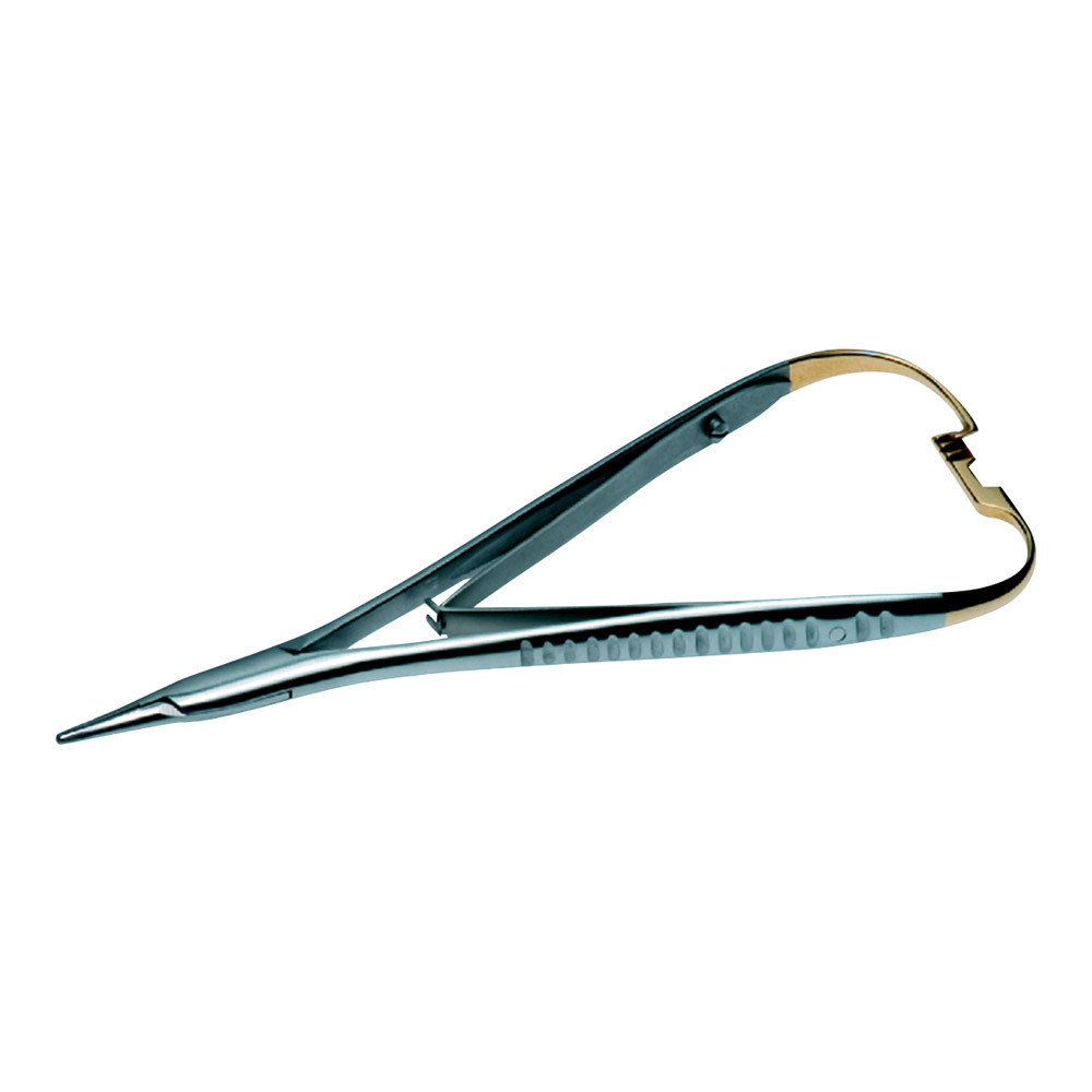 TC-Line Nadelhalter gewährleisten eine sichere, feste und verdrehungsfreie Fixierung der Nadel. Hohe Lebensdauer und Verschleißfestigkeit der Hartmetalleinlagen sind neben der hochwertigen Verarbeitung wichtige Qualitätsmerkmale dieser Instrumente. Hochliegende Innensperren verhindern das Einklemmen der OP-Handschuhe in die Nadelhaltersperren und ein spezielles Doppelfedersystem gewährleistet komfortable Leichtgängigkeit und einfache Reinigung.