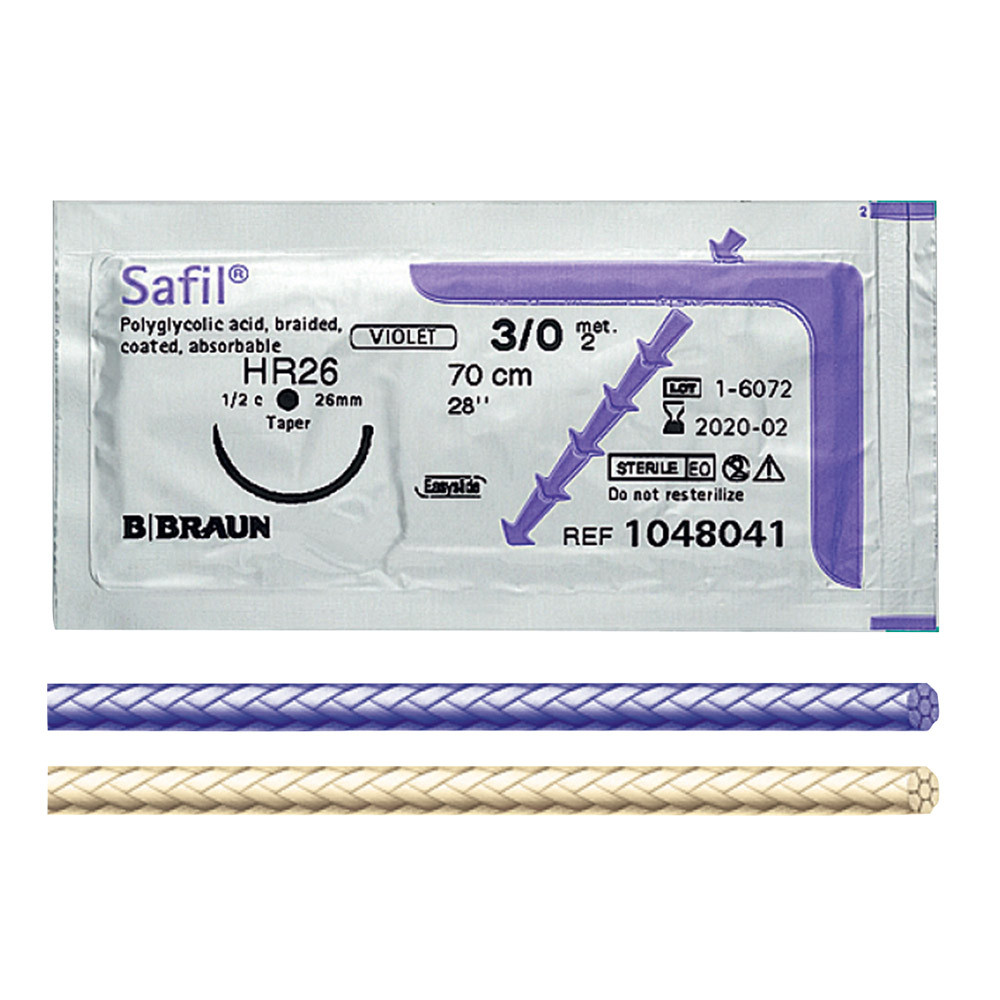Nadel-Faden-Kombination. Safil ist indiziert in den Anwendungsbereichen, wo gemäß chirurgischer Praxis geflochtenes, synthetisches, resorbierbares Nahtmaterial eingesetzt wird. • violett oder ungefärbt • Hohe Reißfestigkeit • Geringes Gewebetrauma • Glatter Faden • Wenig Memory • Angenehmes Handling