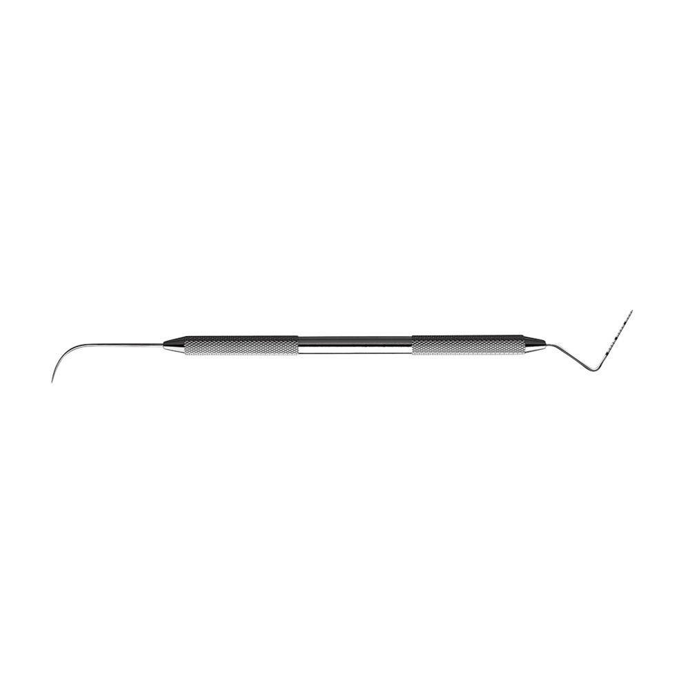 Doppelendige Instrumente mit einer Sonde und einem Parodontometer zum Ertasten und Messen von Taschentiefen. Skaleneinteilung 15-14-13-12-11-10-9-8-7-6-5-4-3-2-1