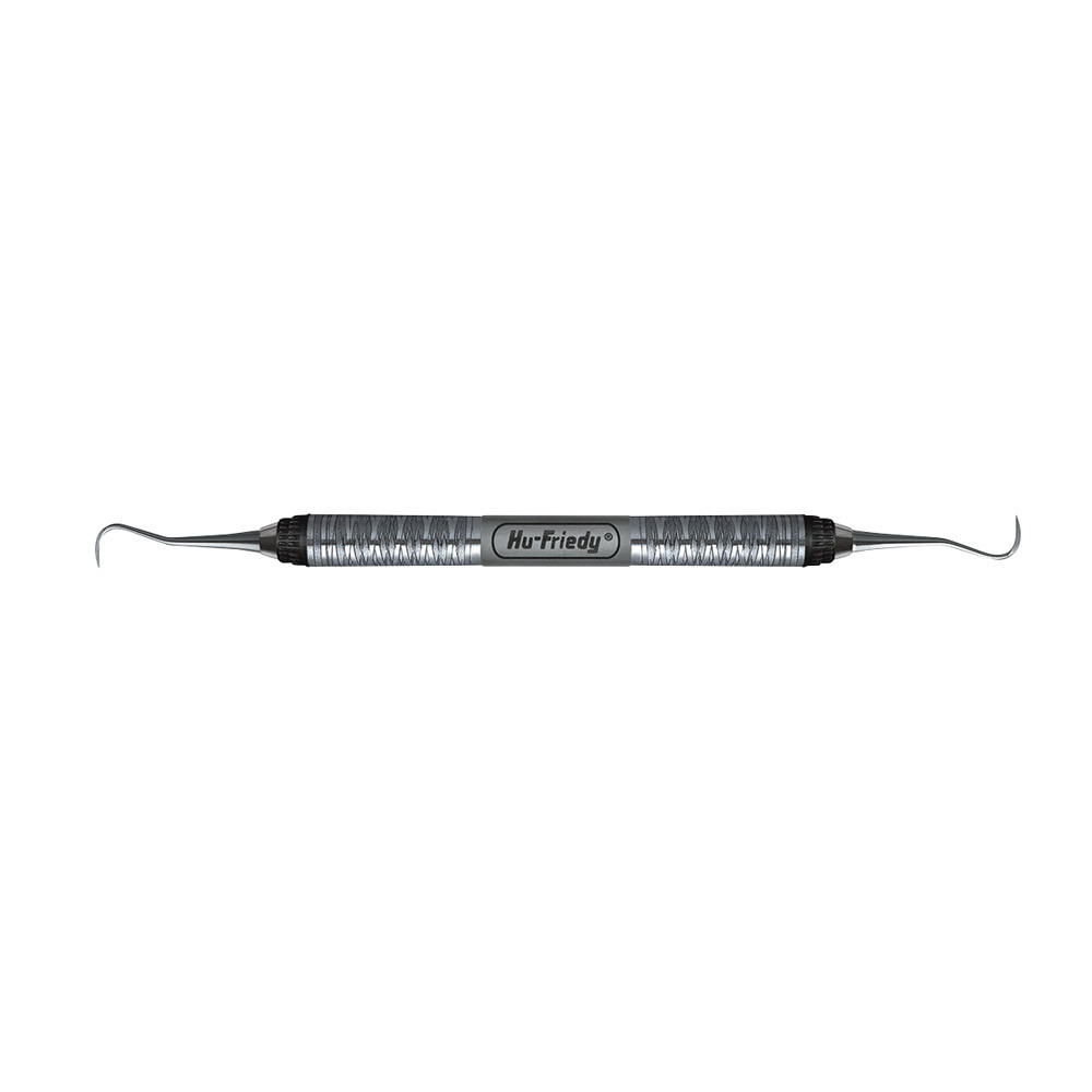 Sichel-Scaler mit feinen Arbeitsenden. Schäfte im Kontra-Winkel. Besonders geeignet zum Reinigen von mesialen und distalen Flächen der Frontzähne und Prämolaren.
