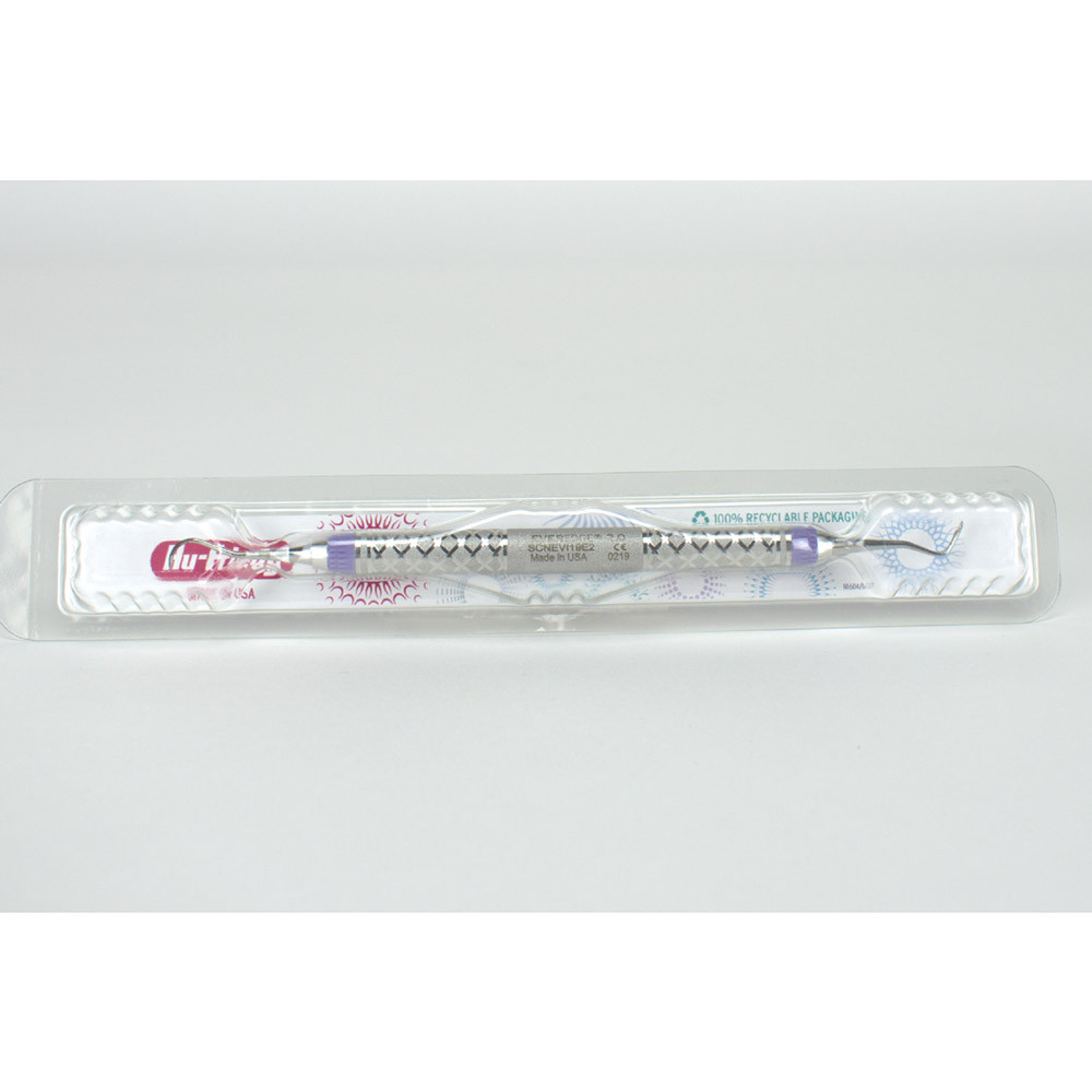 1 = Gerades Exkavatorende für die Entfernung von Flecken und Zahnstein im lingualen Frontzahnbereich, kombiniert mit einer superdünnen gebogenen Sichel für die Frontzähne 1/H5 = Gerades Exkavatorende für die Entfernung von Flecken und Zahnstein im lingualen Frontzahnbereich, kombiniert mit einer größeren H5-Sichel – einer dünnen gebogenen Klinge für den Approximal- und den Frontzahnbereich 2 = Superdünner gebogener Sichel-Scaler für den molaren Bereich. Das einzigartige abgewinkelte Design gestattet den optimalen Zugang zu approximalen Flächen der Molaren sowie eine ergonomische Handhaltung 3 = Superdünne doppelte Schneidklingen sorgen für effektive Platzierung bei engen, schmalen Kontakten und interproximalen Bereichen, sowie für präzisen Zugang zur effektiven Entfernung leichter bis mäßiger Ablagerungen 4 = Zugespitzte doppelte Schneidklingen sorgen für präzisen Zugang zwecks wirksamer Entfernung von Ablagerungen. Der steifere Schaft sorgt für die wirksame Entfernung geglätteter, starker und hartnäckiger Ablagerungen