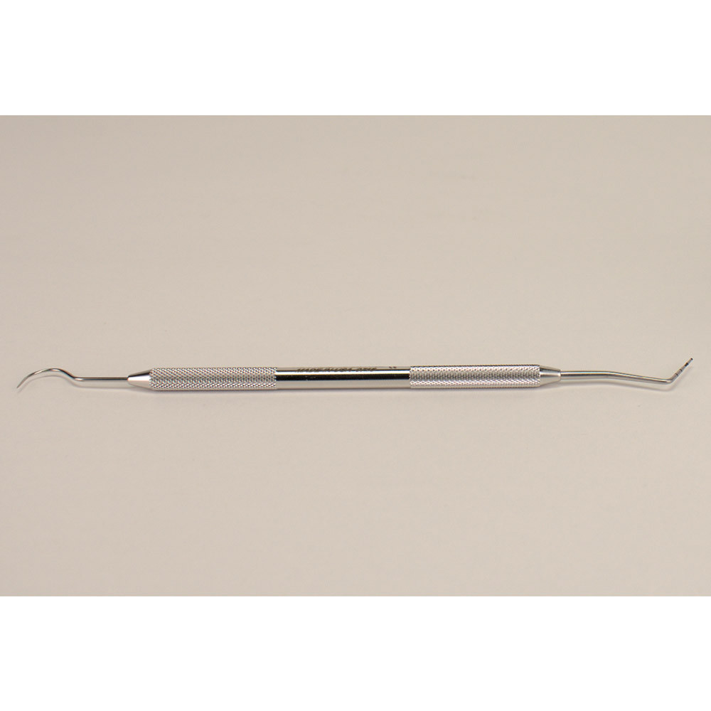 Sonden-Parodontometer-Kombination. Doppelendige Instrumente mit einer Sonde und einem Parodontometer zum Ertasten und Messen von Taschentiefen. Das Parodontometer ist mit schwarzen Farbmarkierungen versehen. Die exakt aufgebrachten und geglätteten Markierungen lösen sich nicht ab und verblassen nicht.
