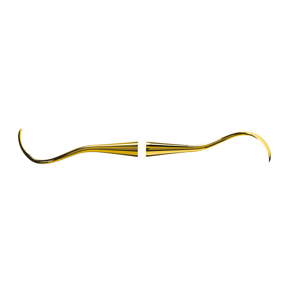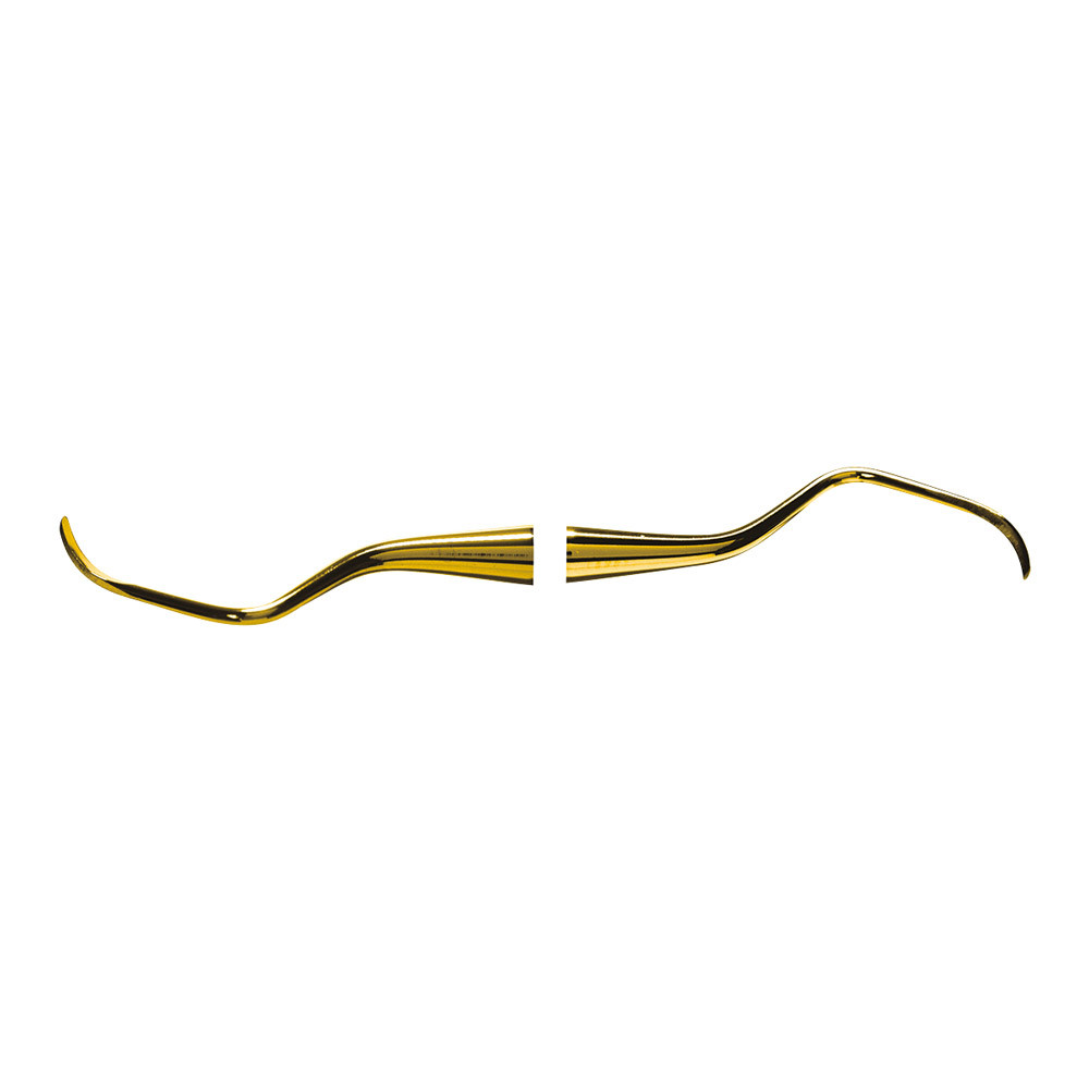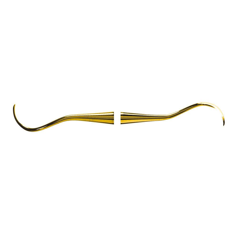 Seitenzahnscaler, stark gebogen und verlängertes Arbeitsende für verbesserten Zugang zu Zahnzwischenräumen....
