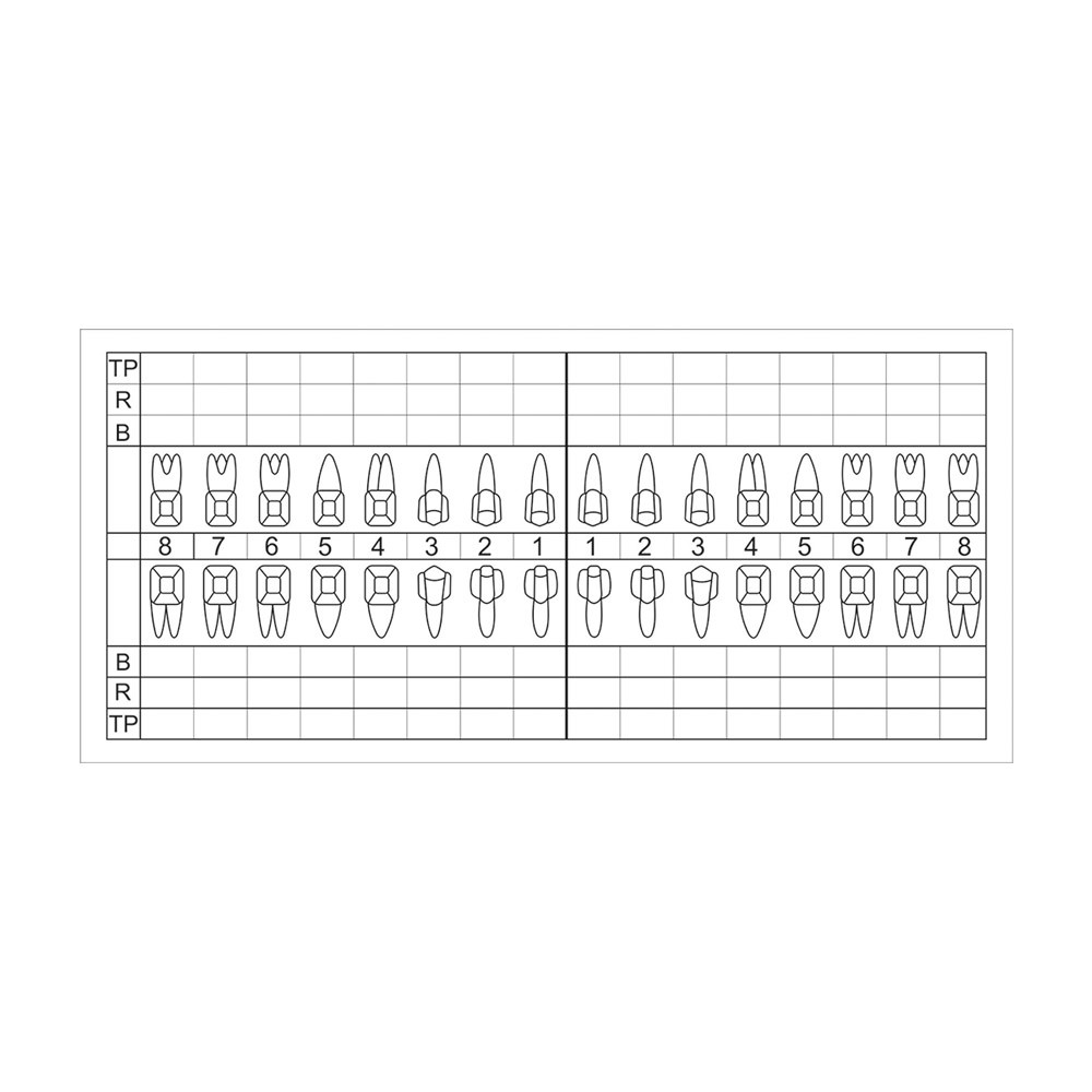 Zahnschema, plastisch, Etikett zum Einkleben in die Karteikarte Format: 100 x 45 mm groß = Format: 140 x 65 mm