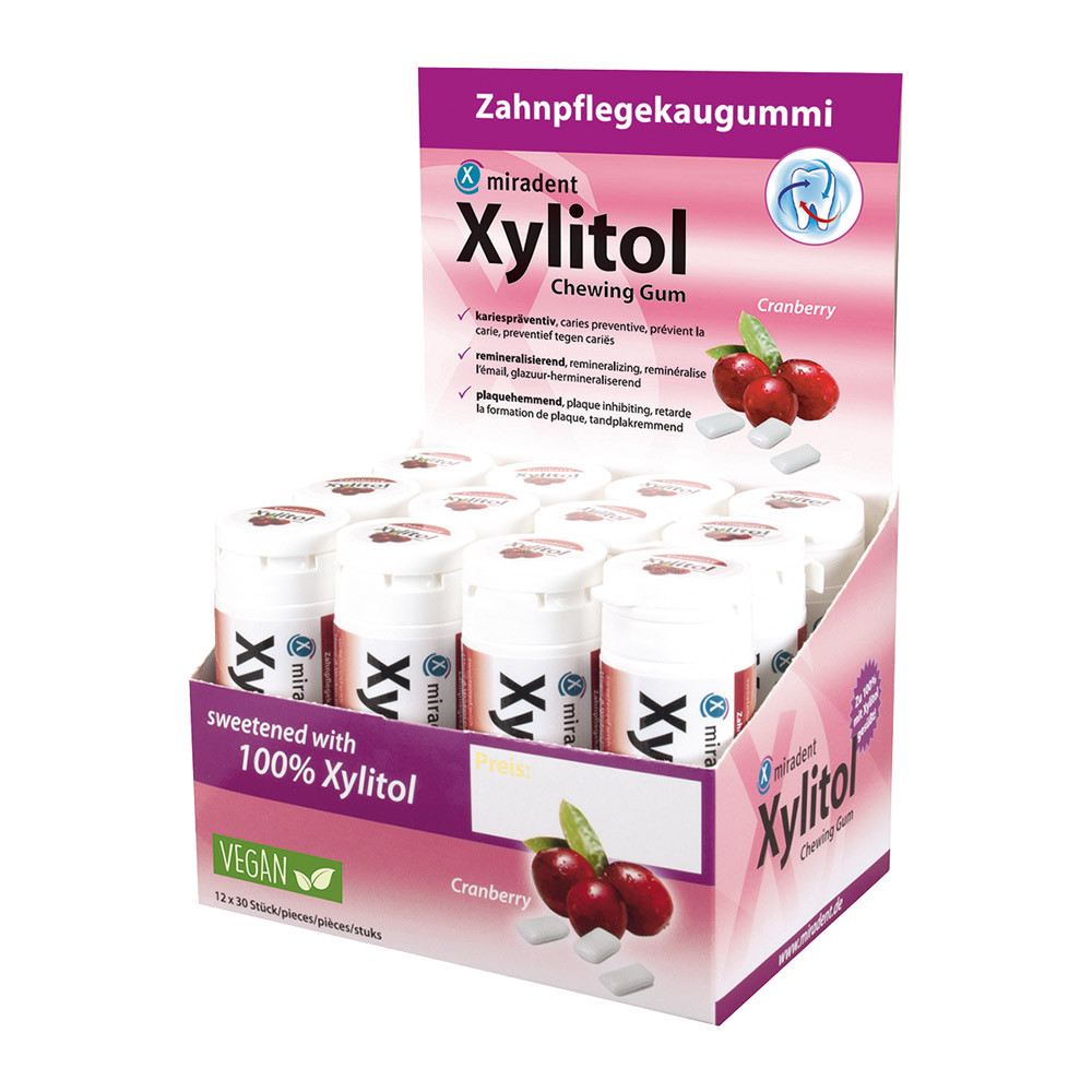 miradent Xylitol Gum Cranberry, 12 x 30 Stück Dose