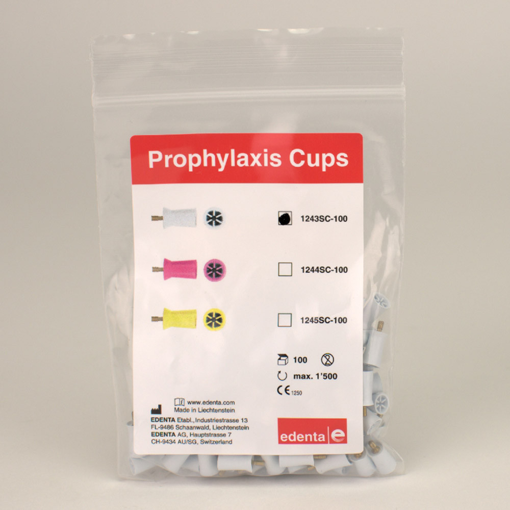 Gummikelche zur Prophylaxe, zum einmaligen Gebrauch. Latexfrei, in zwei Härtegraden, regular und soft.