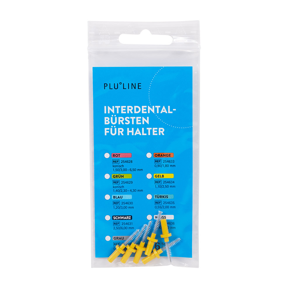 PLULINE Interdentalbürsten für Halter 2,50 mm gelb, 6 Stück
