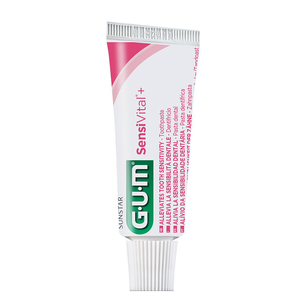 Die GUM SensiVital+ Zahnpasta unterstützt die Zahnfleischgesundheit mit einem effektiven Anti-Plaque-System und sorgt für eine schonenede Pflege.