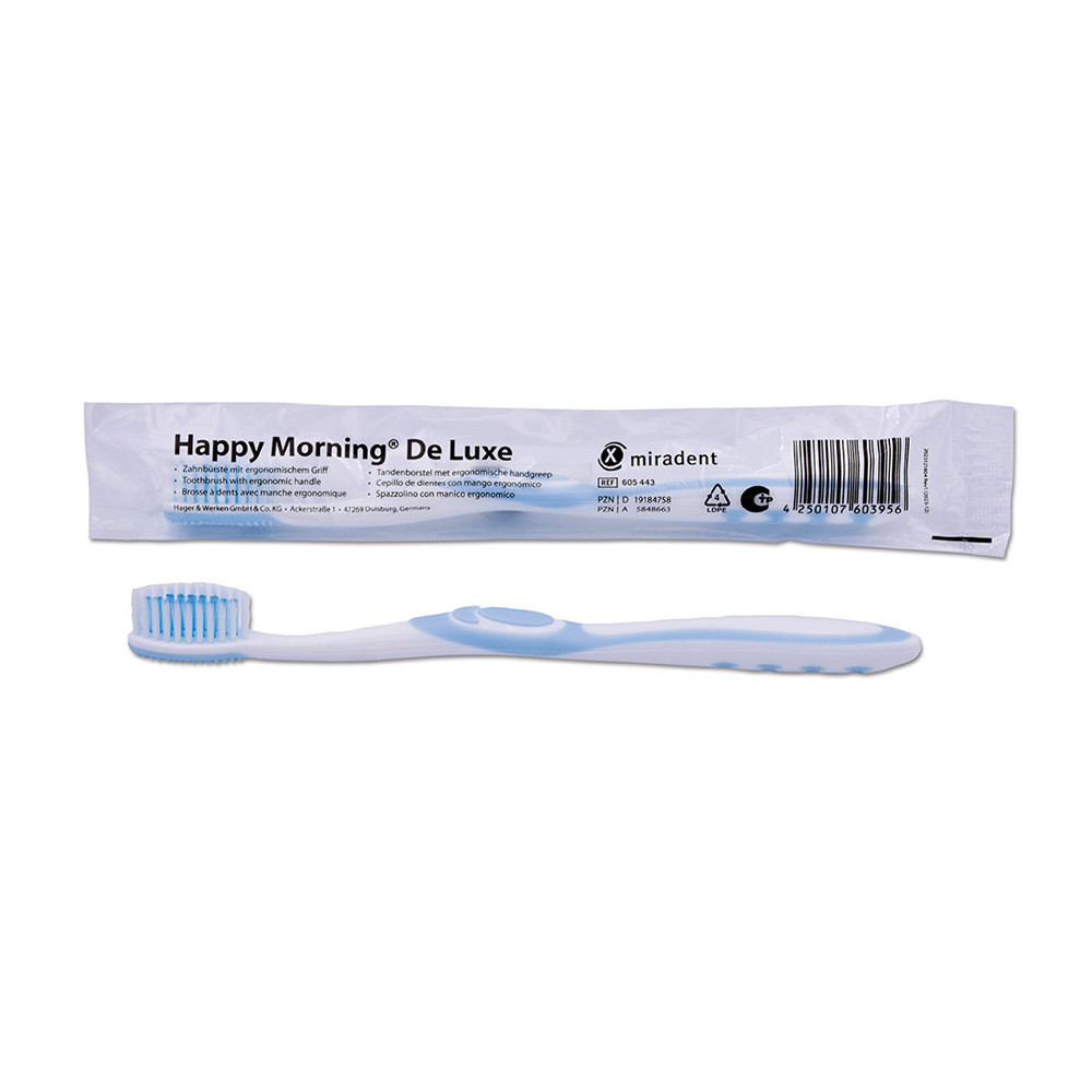 Das neue Design umfasst einen Zungenreiniger auf der Rückseite des Bürstenkopfes für verbesserte Mundhygiene. • Abgerundete Borsten und abgewinkelter Griff • Borstenstärke medium, hygienisch einzeln verpackt