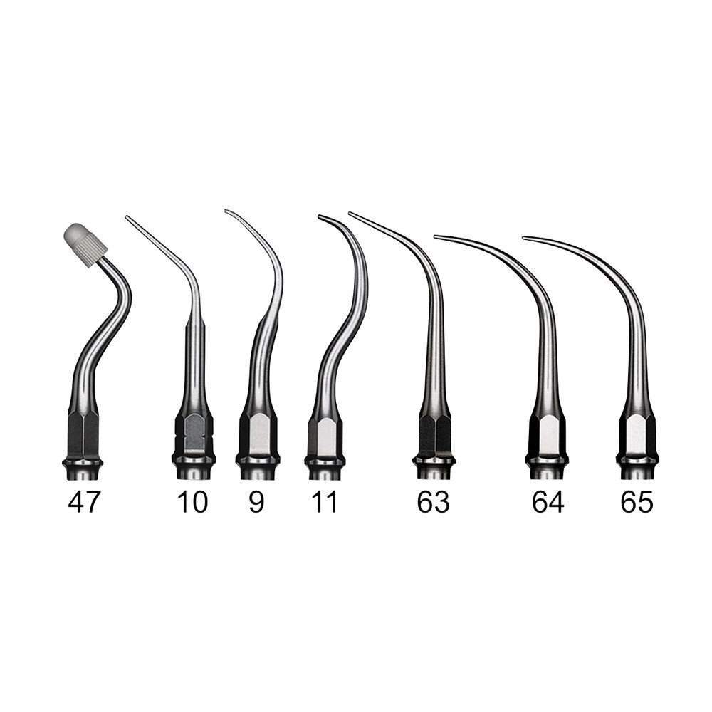 Für die Zahnsteinentfernung geeignet: Sichel, Perio, Universal Instrument. Zum Einsetzen von Inlays geeignet: cem Spitze.