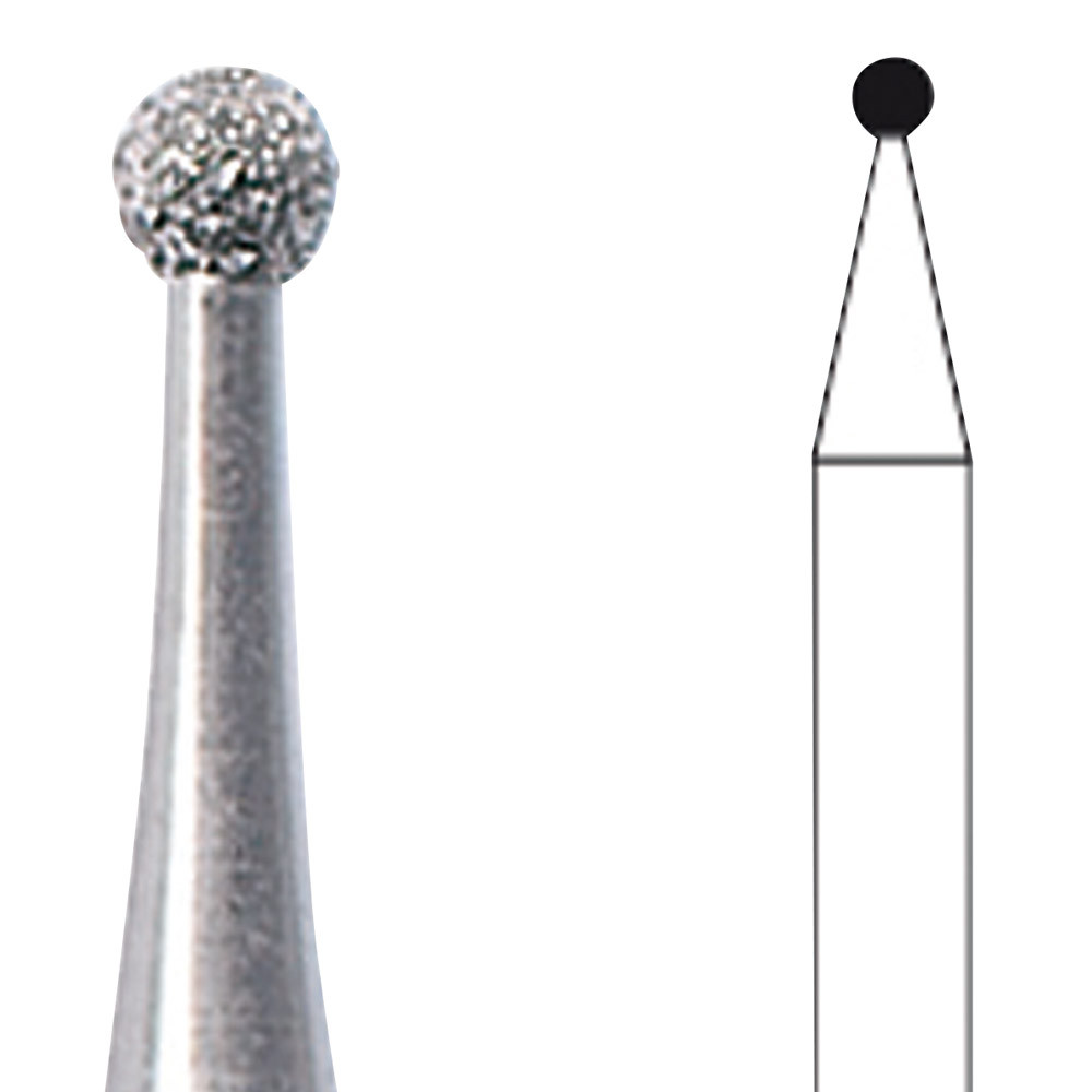 Diamant-Schleifkörper Fig. 801 Normal-Körnung (ca. 100-120µ). Die unterschiedlichen Farben sind für folgende Indikationen vorgesehen: schwarz (SG) - supergrob - Zum sehr schnellen Abtragen und Entfernen alter Füllungen. Grün (G) - grob - Zum schnellen Abtragen und Vorschleifen. Farblos - Standard - Zum universellen Beschleifen der Zahnsubstanz. Rot (F) - fein - Zum Feinschleifen von vorpräparierten Zahnoberflächen. Gelb (C) - superfein - Zum Finieren von Kompositfüllungen und Füllungsrändern. Weiß (UF) - ultrafein - Zum Glätten von Kompositen, Kompomeren und anderen Materialien.