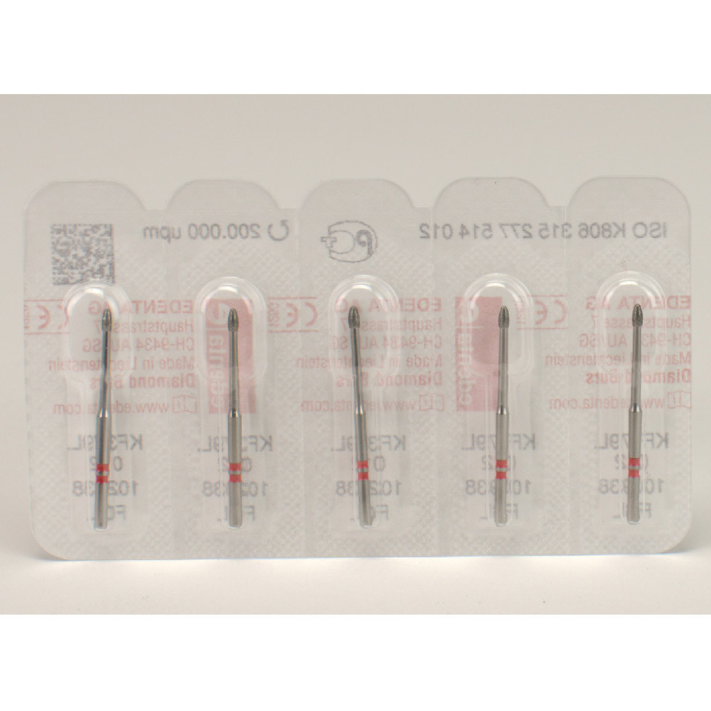 Diamant mit langem Hals ermöglicht eine gezielte Bearbeitung von engen Bereichen, wie in Spitzen von Frontzahngerüsten.