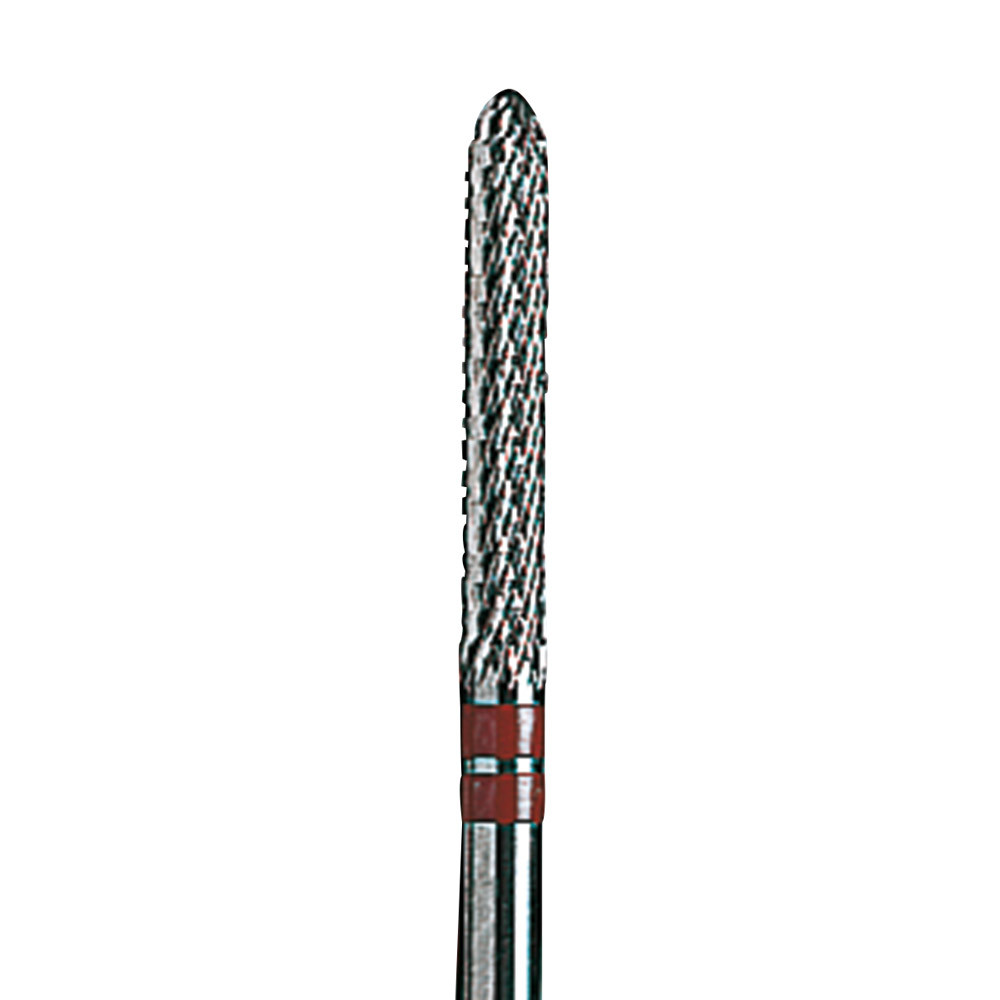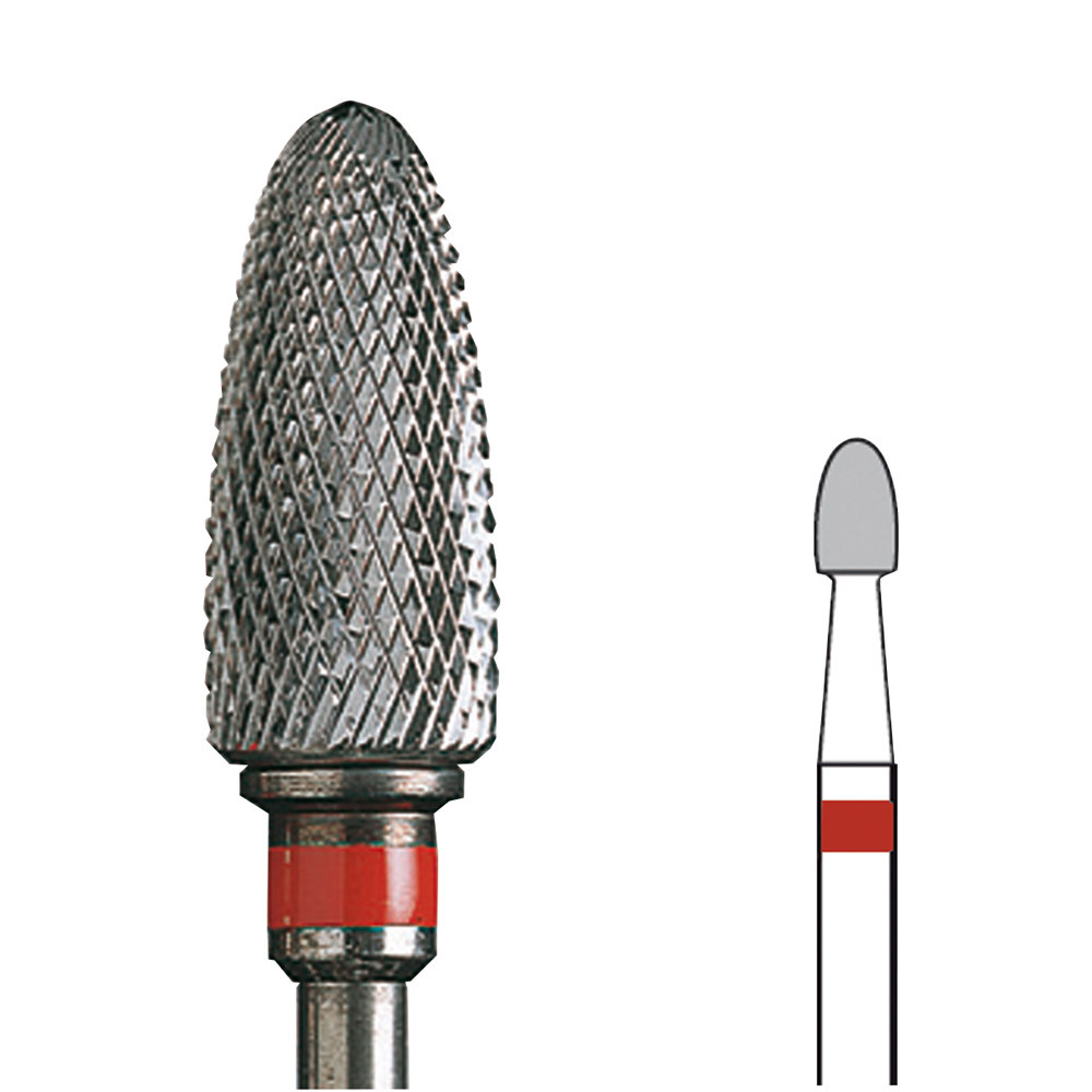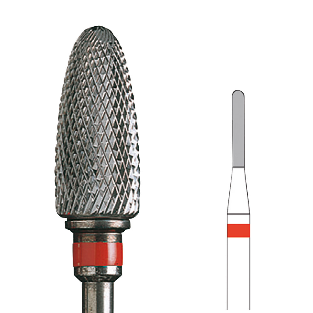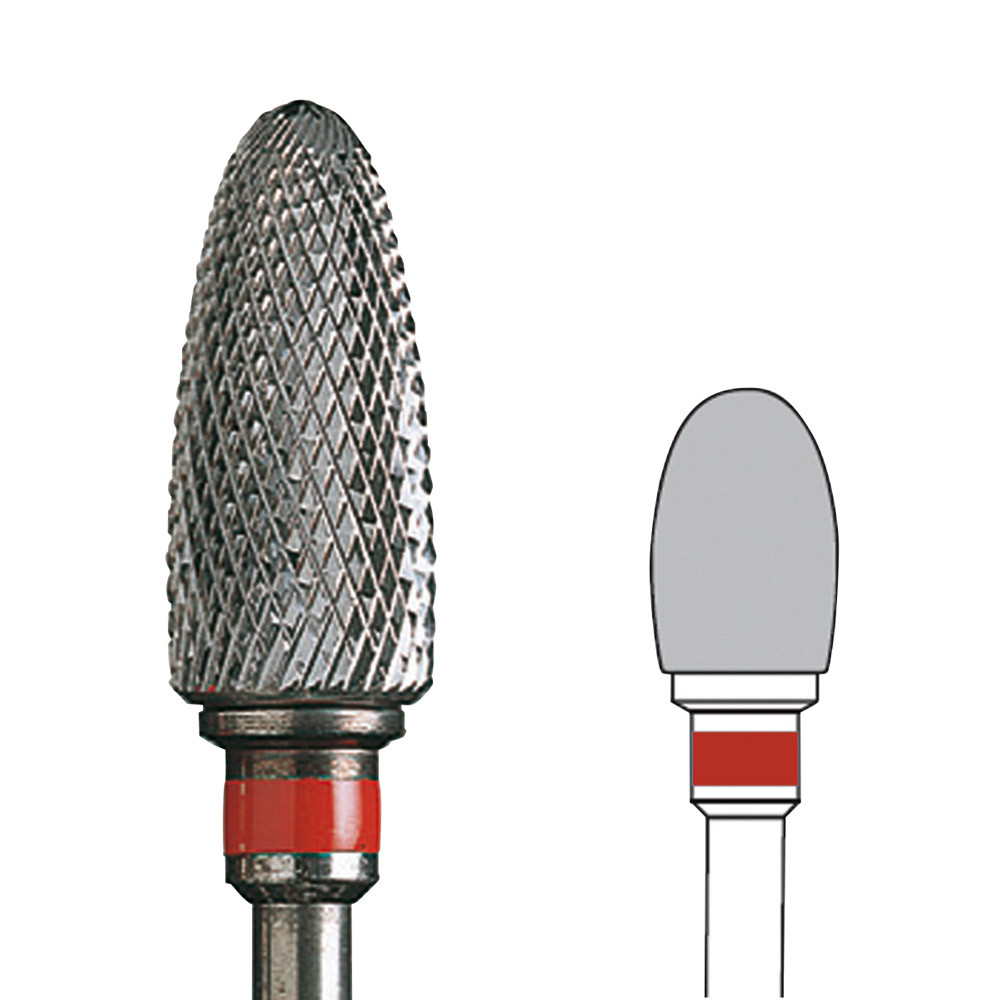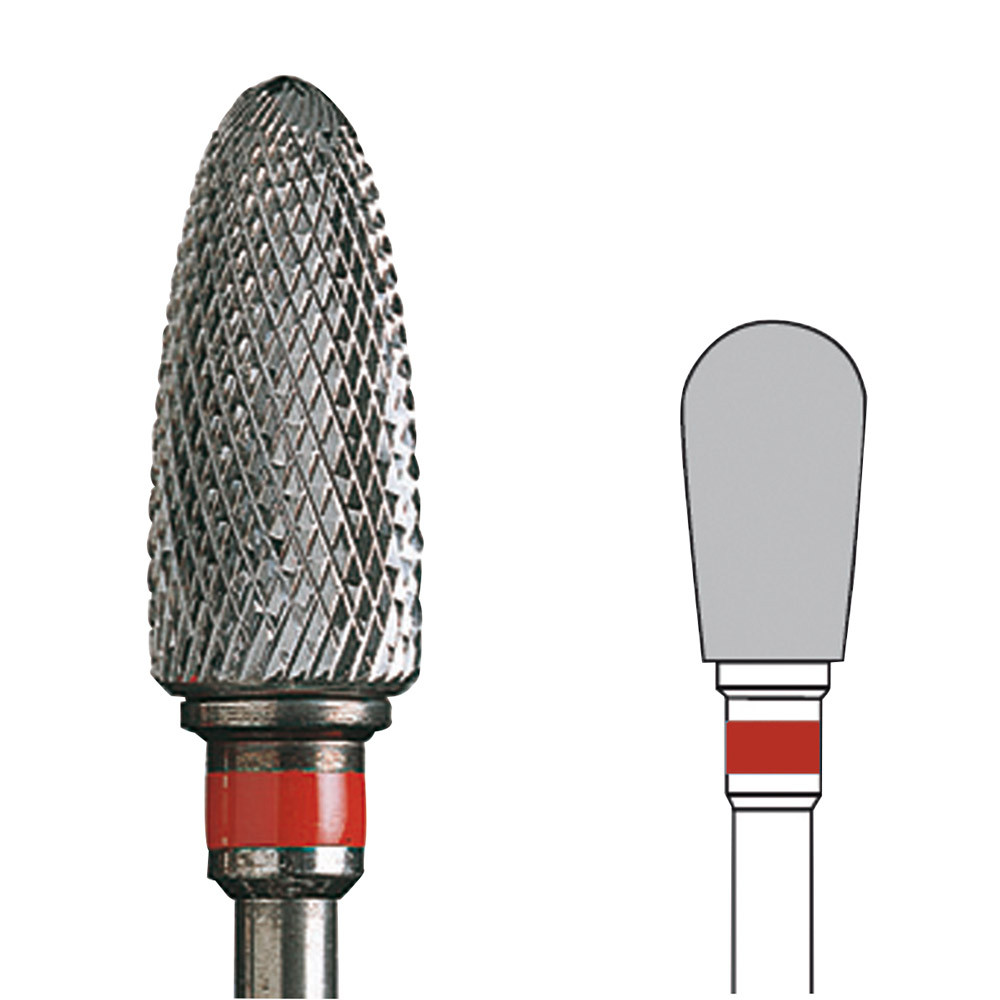 Hartmetallfräse, kreuzverzahnt, birnenförmig. Anwendung: Zum Einschleifen von Aufbissschienen