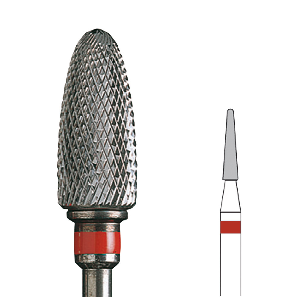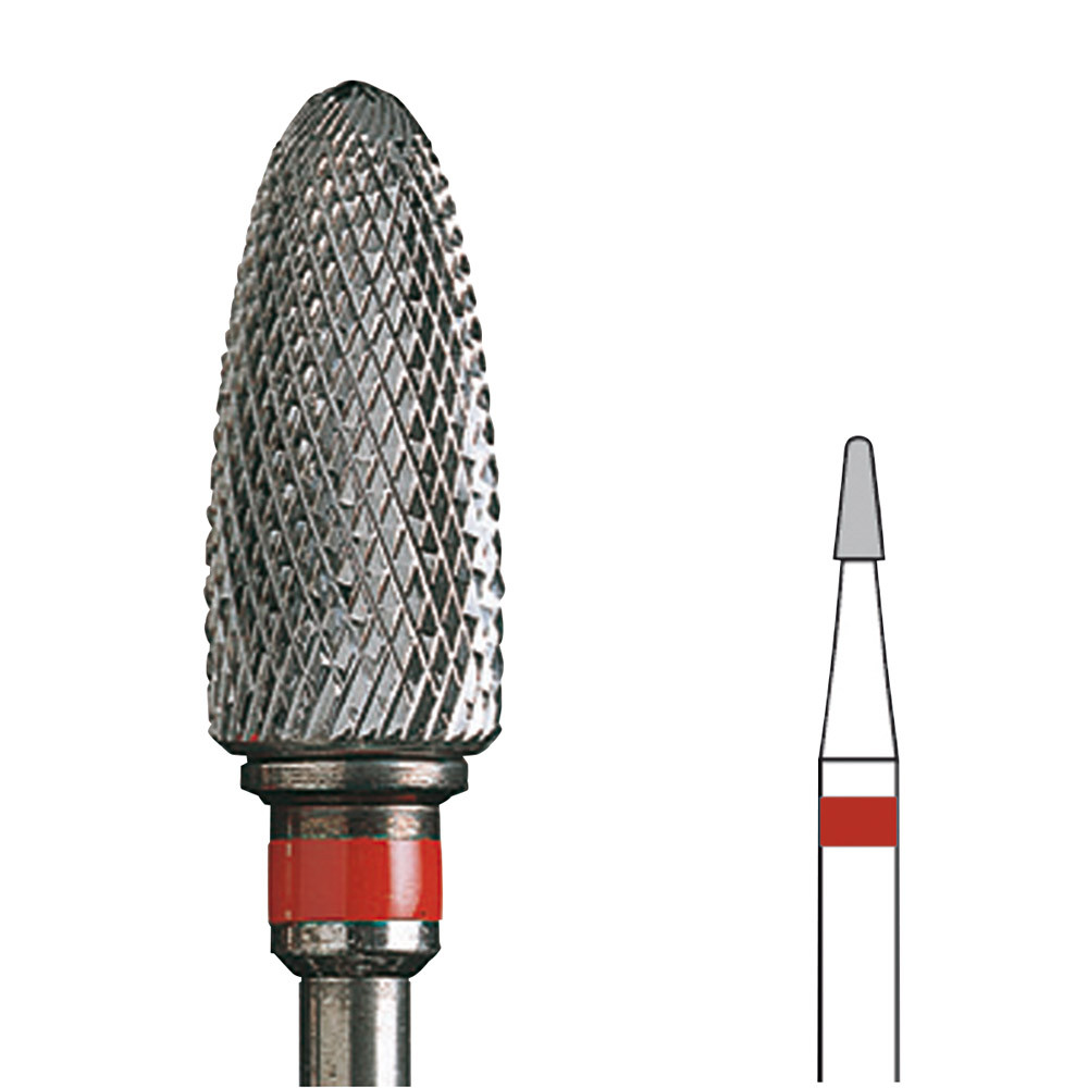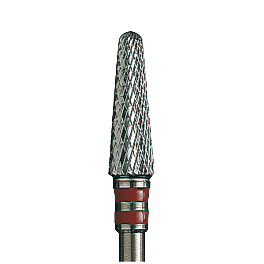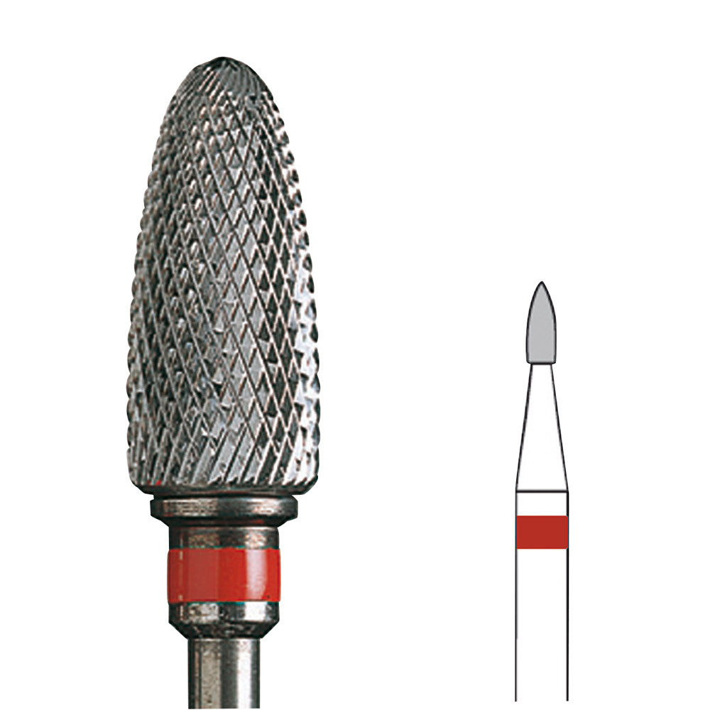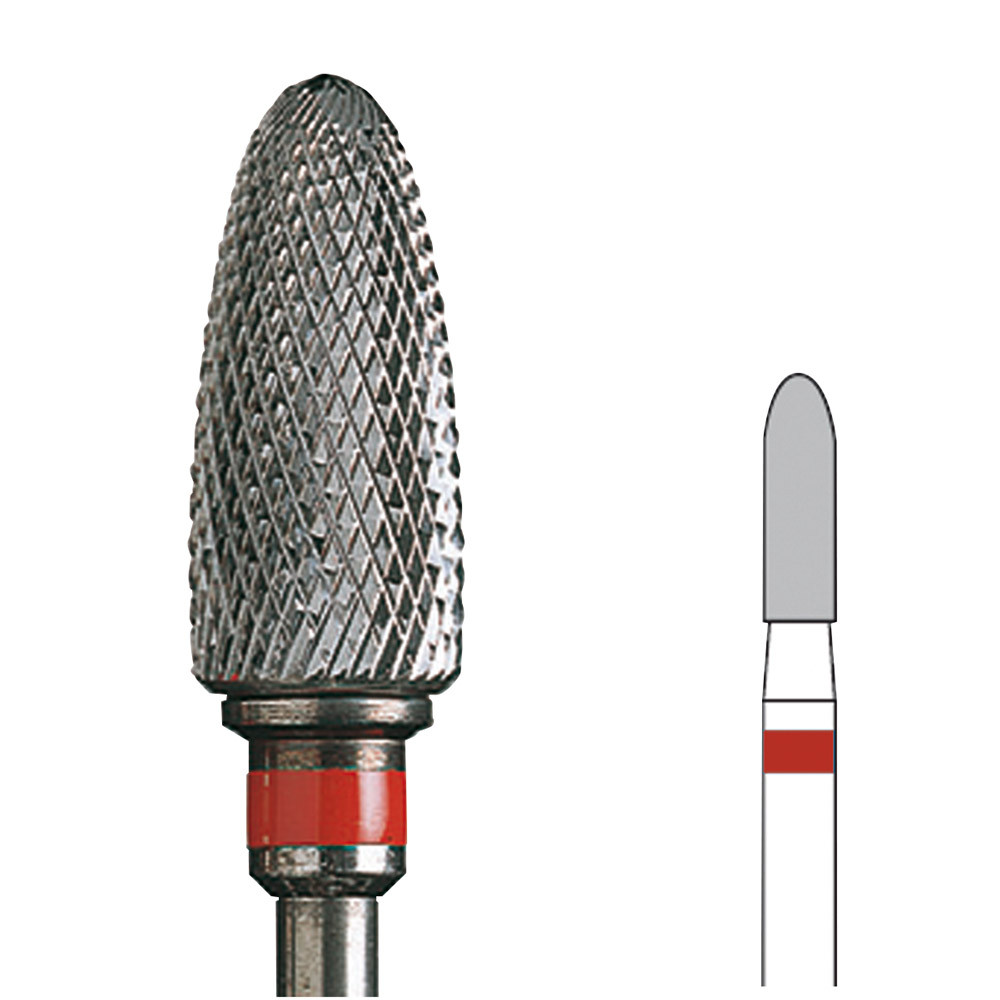 Hartmetallfräse, kreuzverzahnt, birnenförmig. Anwendung: Zum Einschleifen von Aufbissschienen