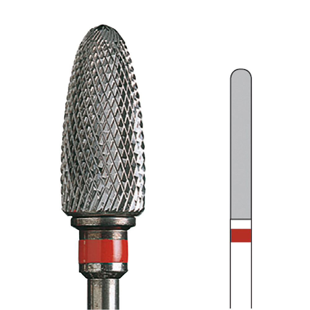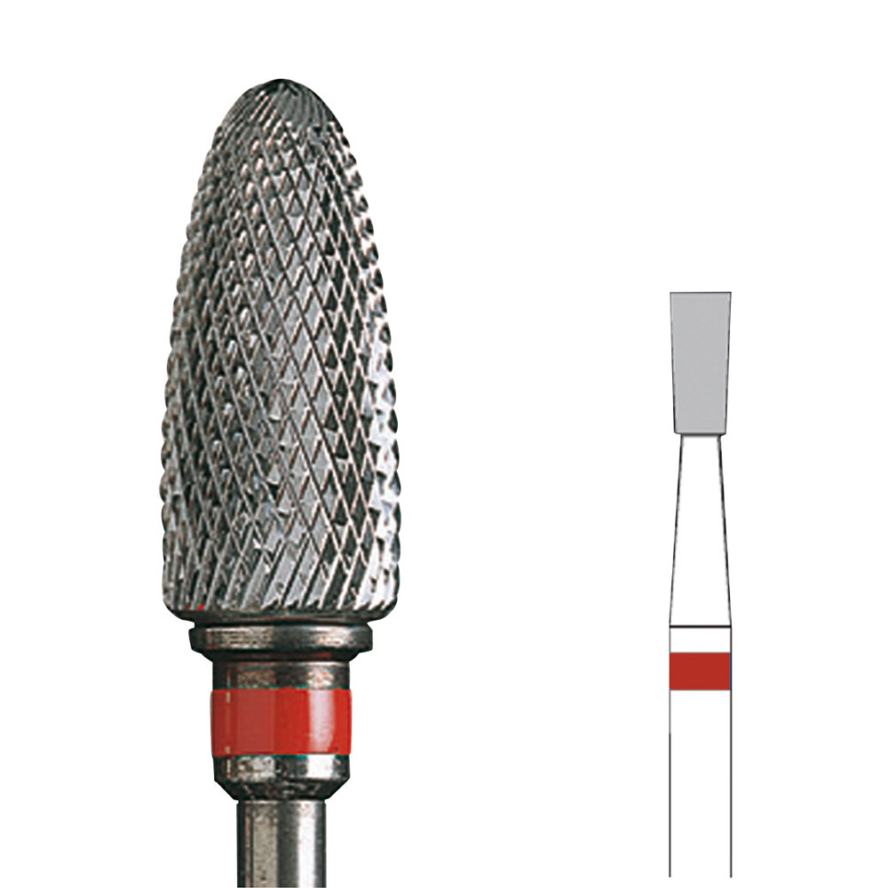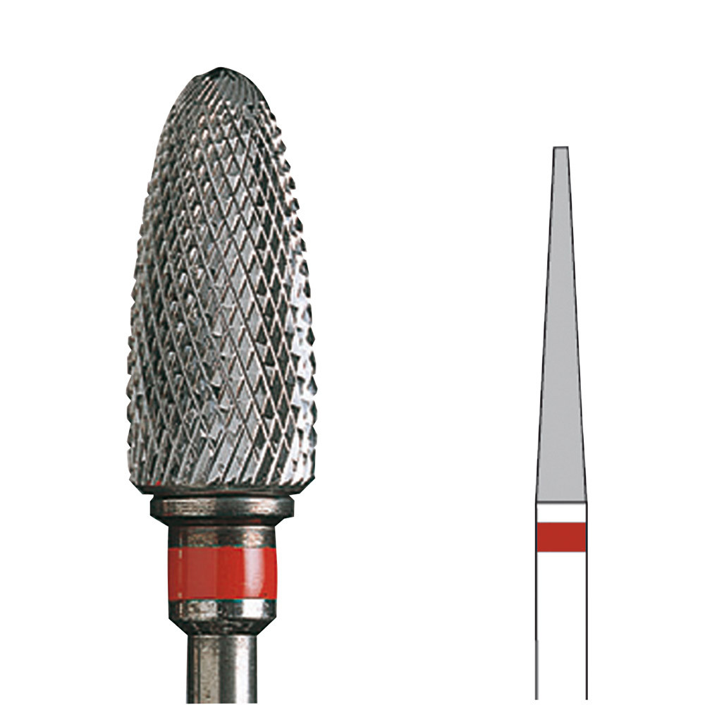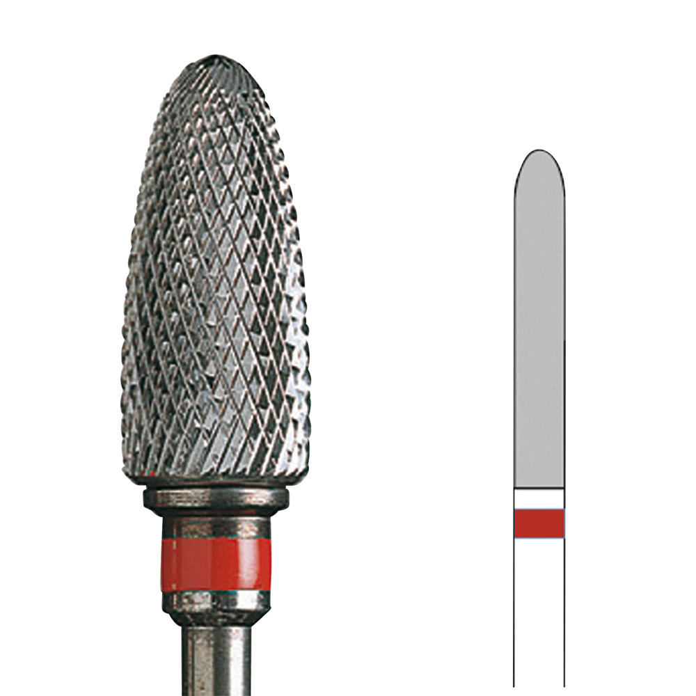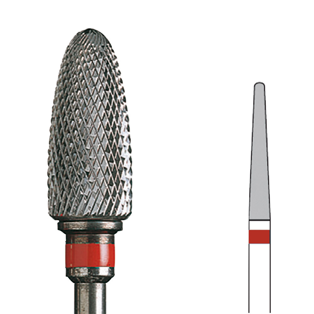 Hartmetallfräse, kreuzverzahnt, birnenförmig. Anwendung: Zum Einschleifen von Aufbissschienen