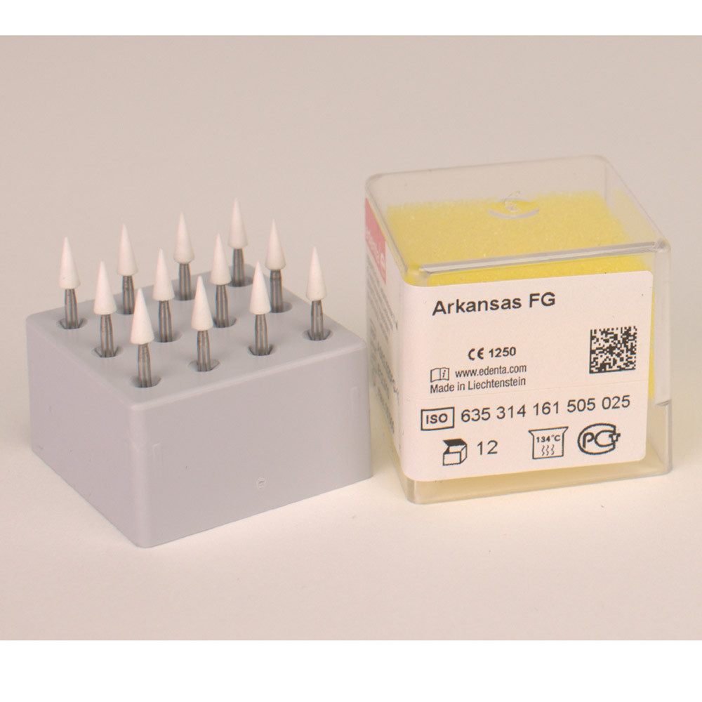 Schleifkörper aus hochwertigem, feinkörnigem Aluminium - Oxid mit keramischer Bindung. Speziell geeignet für das schnelle, formgenaue Finieren (Feinstbearbeitung) von: Komposit - Materialien. Finieren von Zahnschmelz, Zahnstümpfen, Kompositen und Keramik.