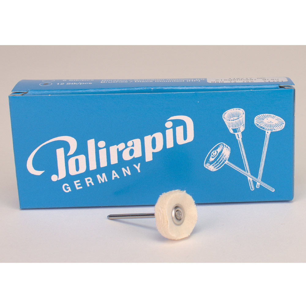 Miniaturbürsten mit Scheibchen aus eichem Flanellstoff - montiert für das Handstück.