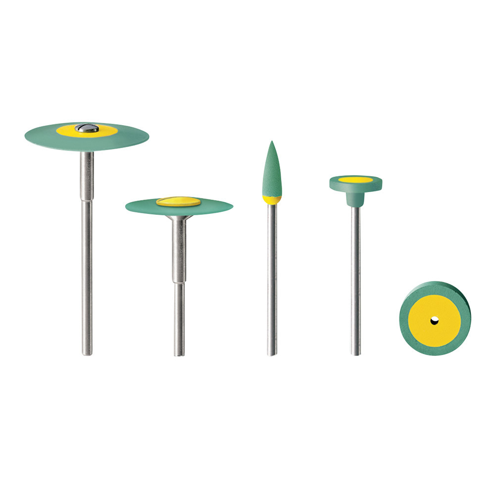 Diamantpoliersystem für die Bearbeitung von Zirkonoxid. Herausragende Polierergebnisse durch optimierte Diamantkörnung. Niedriger Drehzahlbereich (7.000 - 12.000 U/min), geringe Wärmeentwicklung. Grün (mittel) = 1. Stufe: Glätten und Vorpolieren Orange (fein) = 2. Stufe: Hochglanzpolitur