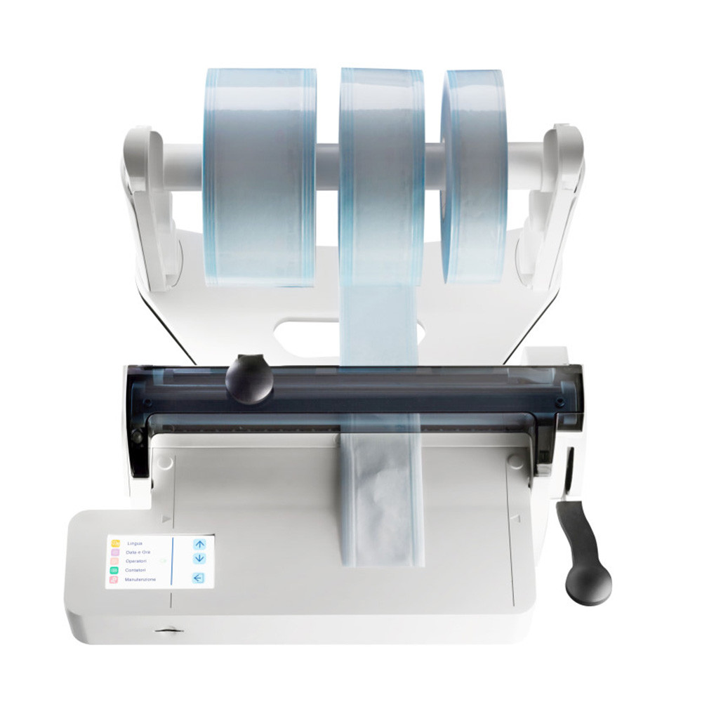 Multifunktionionale Rollenhalte- und Schneideeinheit für Klarsichtsterilisierverpackungen - wahlweise zur...