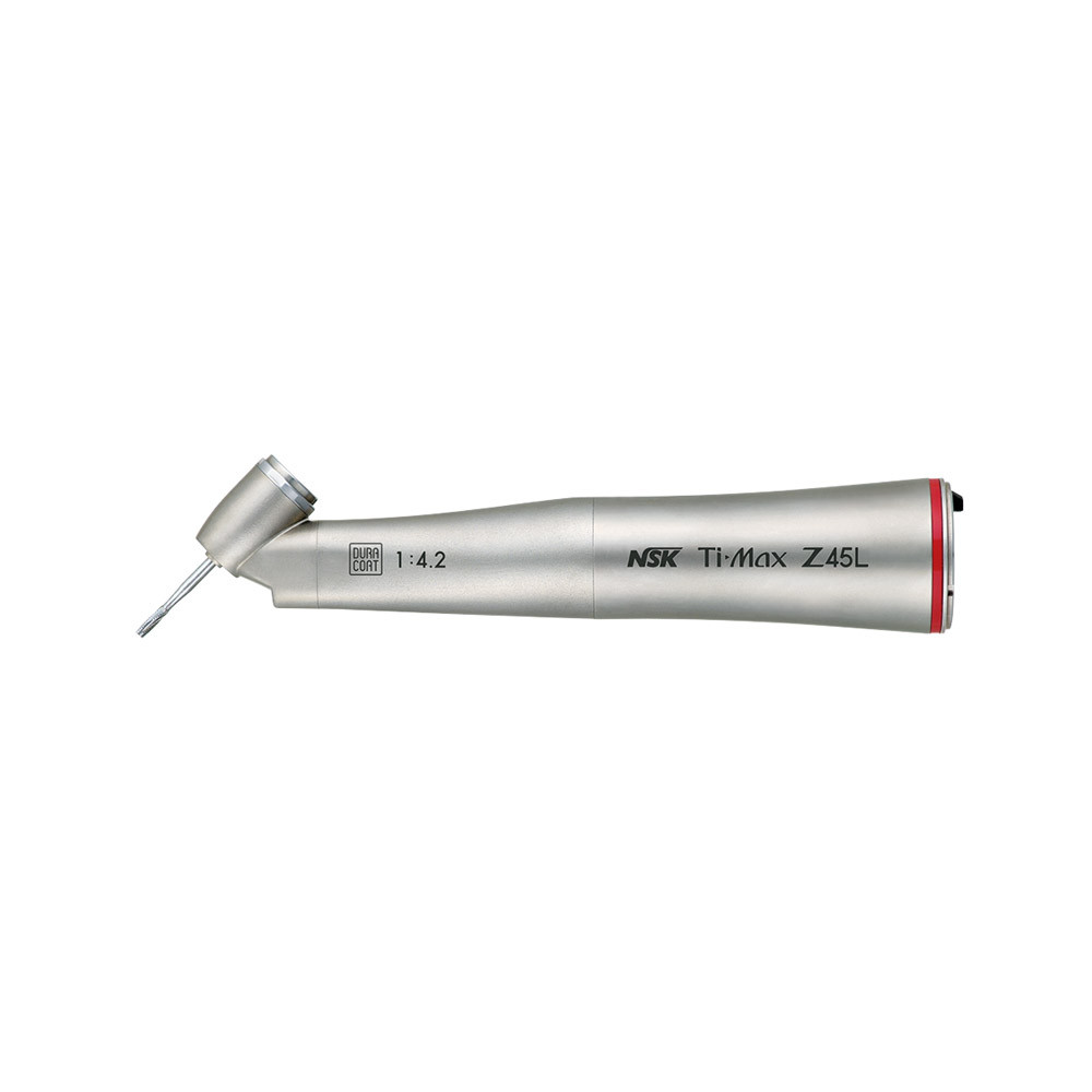 Als weltweit erstes 45-Grad-Winkelstück erleichtert Ti-Max Z45L den Zugang zu schwer erreichbaren molaren Regionen, in denen ein Standard-Winkelstück an seine Grenzen gelangt. Durch seine schlanke Formgebung bietet es ausgezeichnete Sicht und großen Behandlungsfreiraum, da es mehr Raum zwischen dem Instrument und den benachbarten Zähnen lässt. Die kräftige, gleichbleibende Schneidleistung des Ti-Max Z45L verkürzt im Vergleich zu Standard-Winkelstücken die Behandlungszeiten beim zeitaufwändigen Sektionieren oder bei der Extraktion von Weisheitszähnen, wodurch Stress sowohl für den Behandler als auch für den Patienten spürbar verringert wird. Zudem verfügt Ti-Max Z45L über die weltweit erste Zwei-Wege-Sprayfunktion (Umschaltung zwischen Spraynebel und Wasserstrahl) und eignet sich somit für zahlreiche Behandlungsverfahren, wie zum Beispiel die Weisheitszahn-Präparation oder die Eröffnung der Pulpenkammer. • Titankörper mit kratzfester DURACOAT-Beschichtung • Zellglasoptik • Mikrofilter ? Einfach-Wasserstrahl