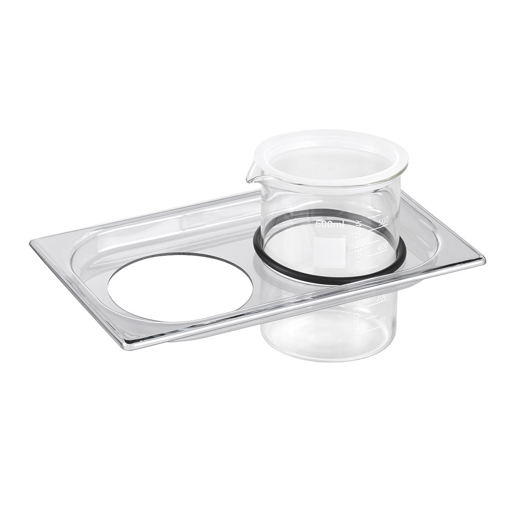 Einsatz für zwei 600ml Glasbecher aus transparentem und stabilem Kunststoff. Der Halter wird einfach auf das Ultraschallreinigungsgerät aufgelegt. Mit Becherhalter und Glasbechern ermöglichen Sie die indirekte Reinigung in Euronda Ultraschallreinigungsgeräten.