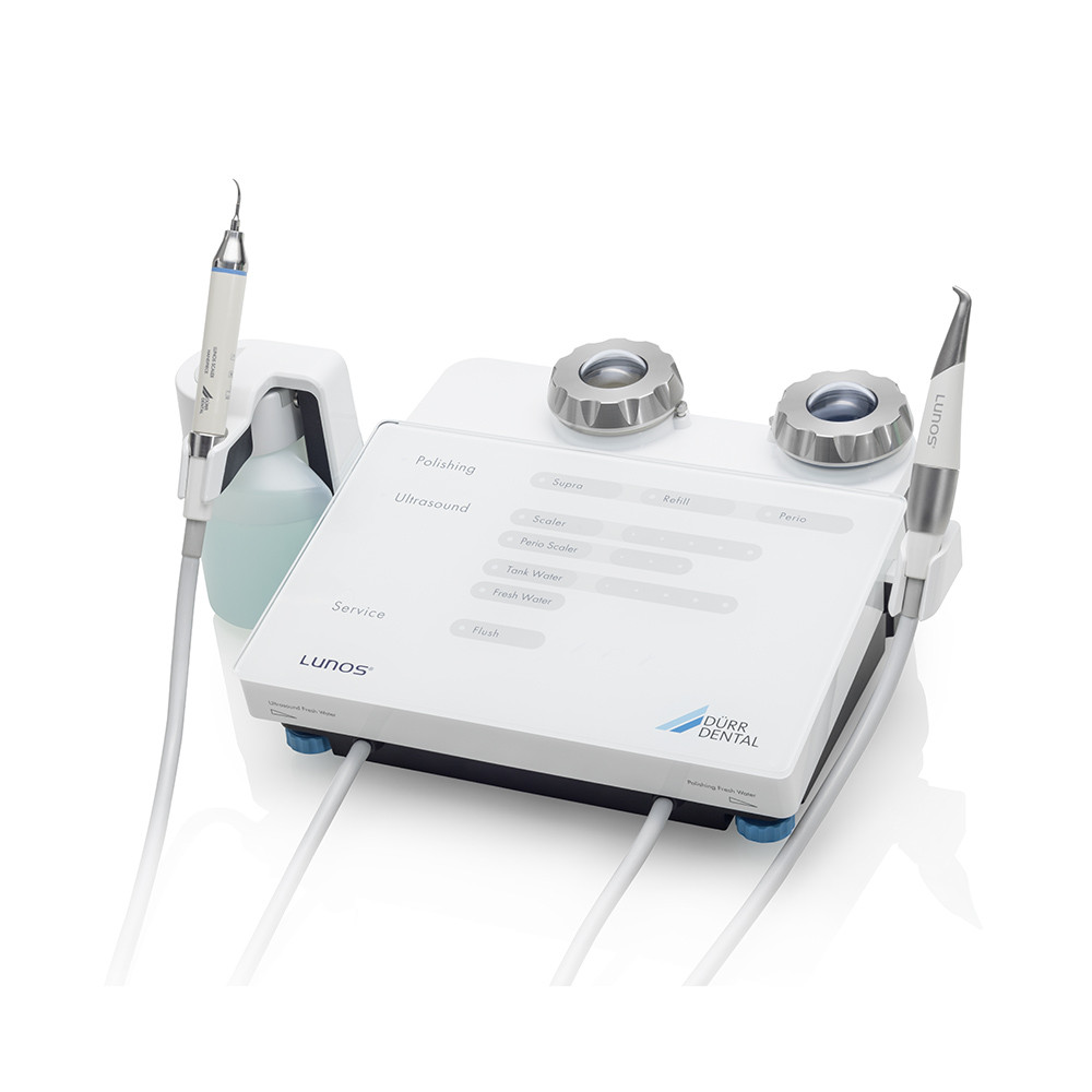 Der MyLunos Duo kombiniert zwei der wichtigsten Behandlungsmethoden bei einer Prophylaxesitzung: Pulverstrahlen und Ultraschall. Das Kombigerät ermöglicht eine vollständige Prophylaxe- und Parodontalbehandlung mit nur einem Gerät bei hochflexibler und bedarfsgerechter Anwendung je nach Patientenfall – von der supra- und subgingivalen Konkremententfernung mit Ultraschall bis zur Entfernung von Verfärbungen und Biofilm mit dem Pulverstrahl.