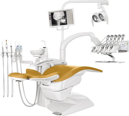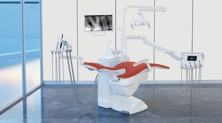 Ein Behandlungsstuhl, der für die Bequemlichkeit des Patienten und den Komfort des Behandlungsteams konzipiert ist.